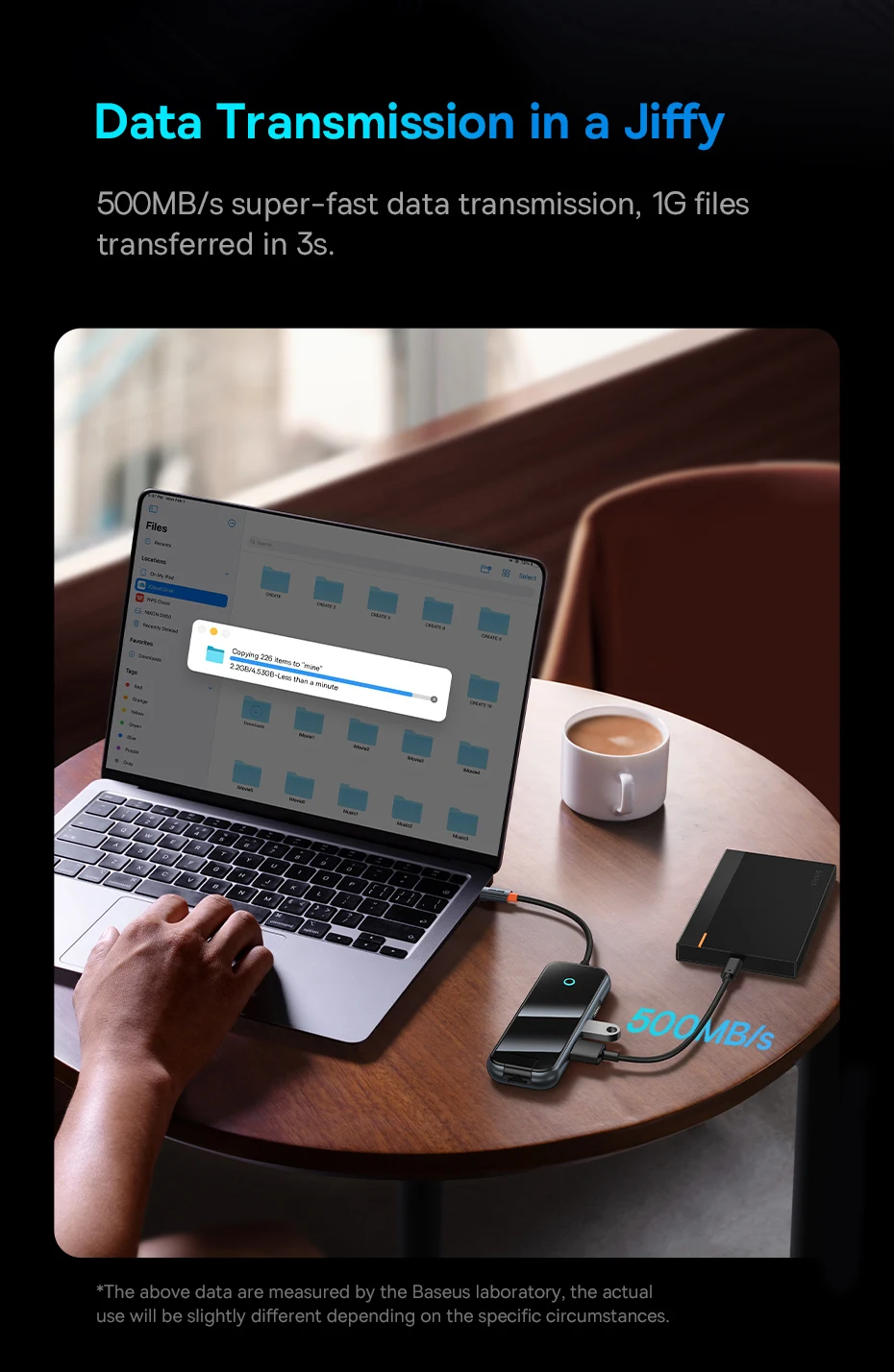 Transmisión de datos súper rápida de 500 MB/s, archivos 1G transferidos en 3S.
