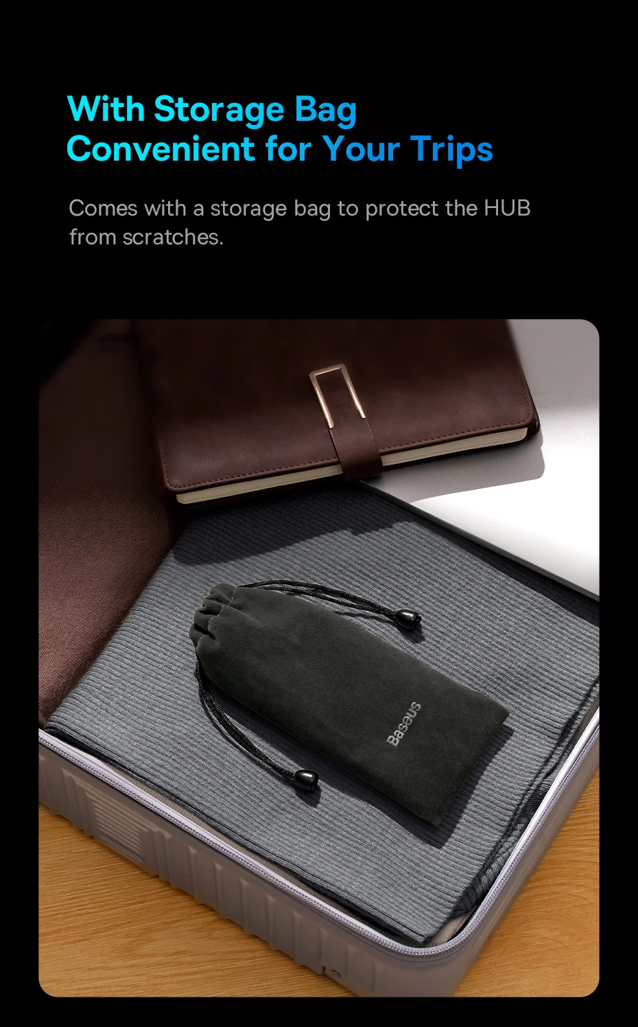 Viene con una bolsa de almacenamiento para proteger el HUB de arañazos.