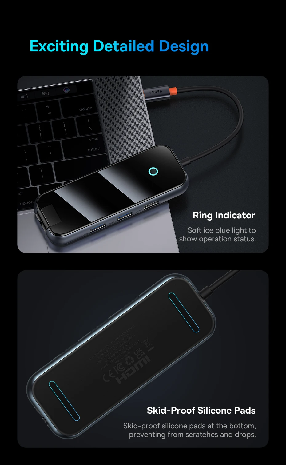 Almohadillas de silicona antideslizantes en la parte inferior, evitando arañazos y caídas.