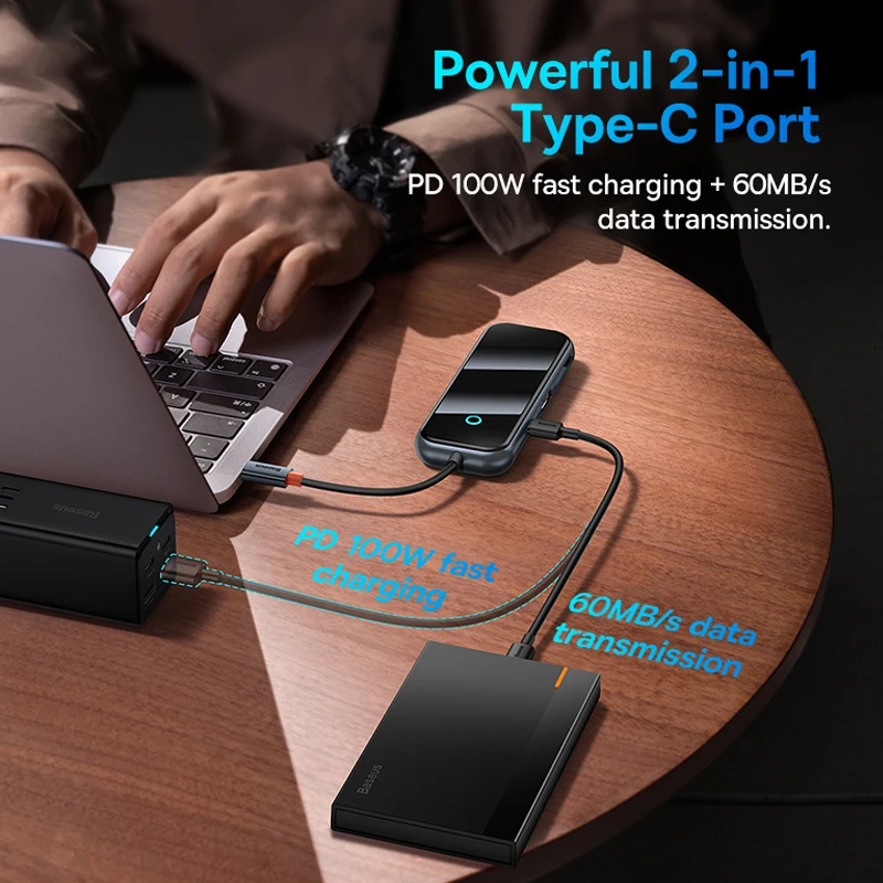 ✔Puerto tipo C 2 en 1: Carga rápida PD de 100W y transmisión de datos de 60MB