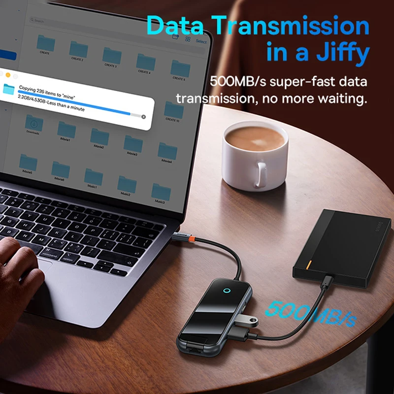 Puerto tipo C 2 en 1, PD 100W carga rápida 60 MB/s transmisión de datos para una mayor eficiencia de trabajo.