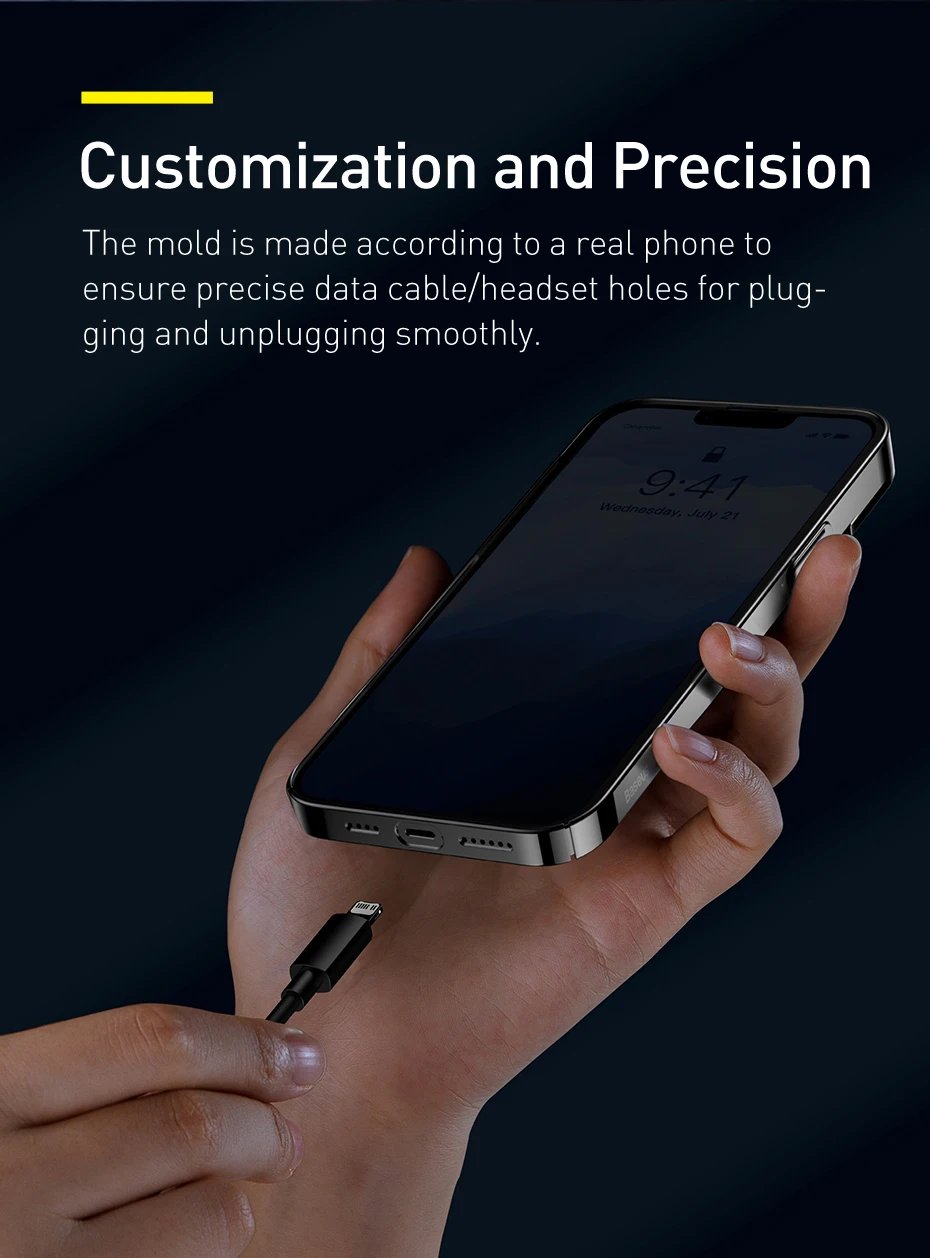 El molde está hecho de acuerdo con un teléfono real para garantizar orificios precisos para cables de datos/auriculares para enchufar y desenchufar sin problemas.