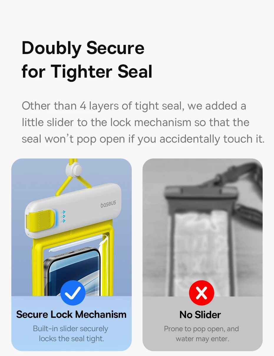 Además de 4 capas de sello hermético, agregamos un pequeño control deslizante al mecanismo de bloqueo.