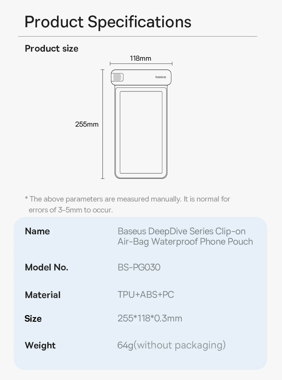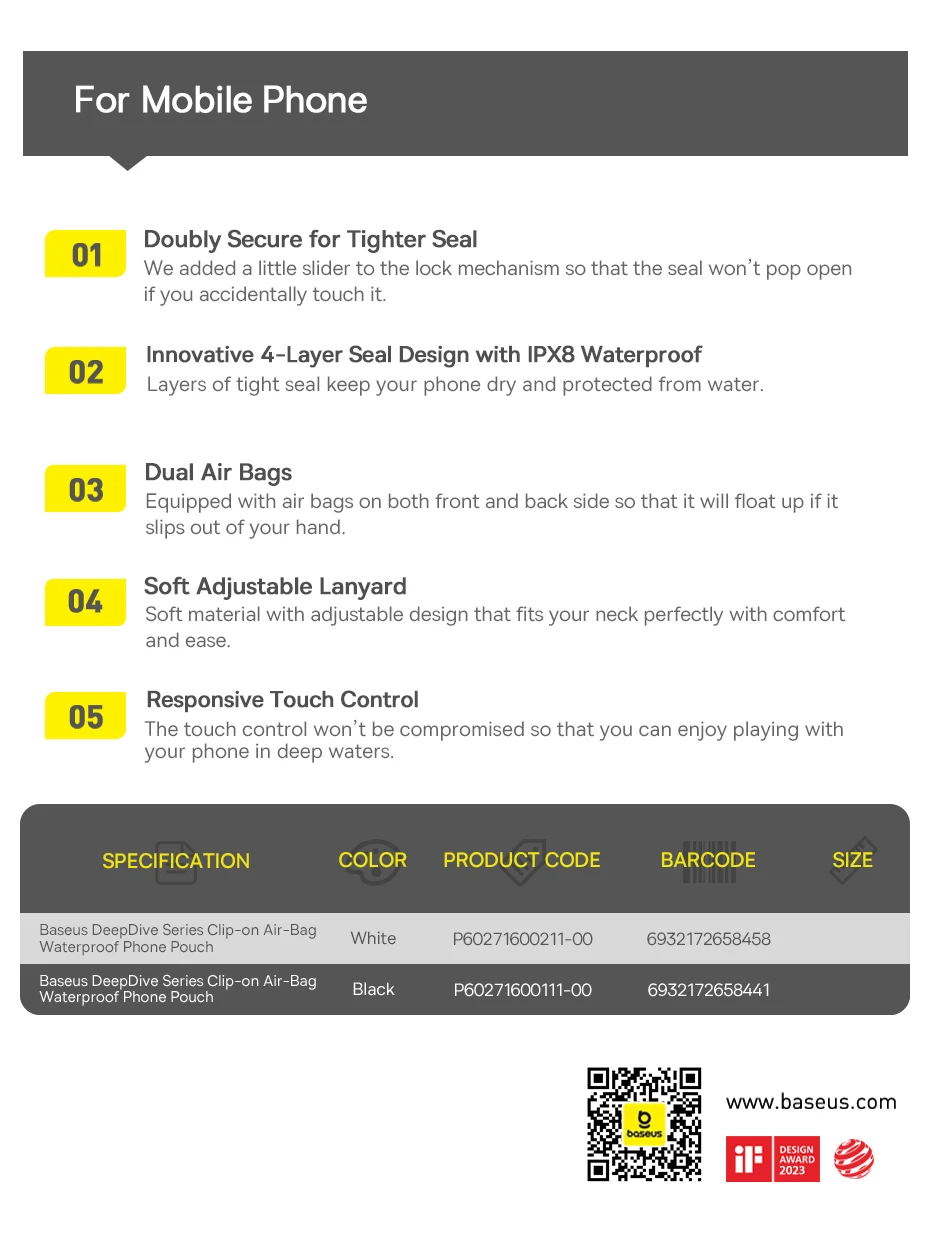 1.Nombre: Bolsa impermeable para teléfono Baseus DeepDive Air-Bag con clip