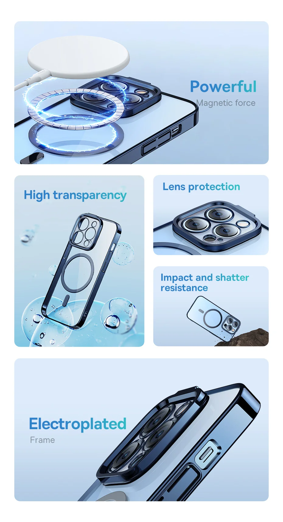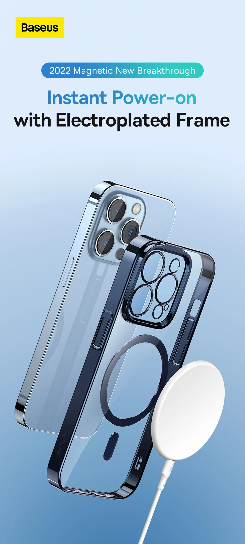 Comprar Baseus-Funda magnética para iPhone 14 Pro Max Plus, cubierta trasera magnética transparente, 2022