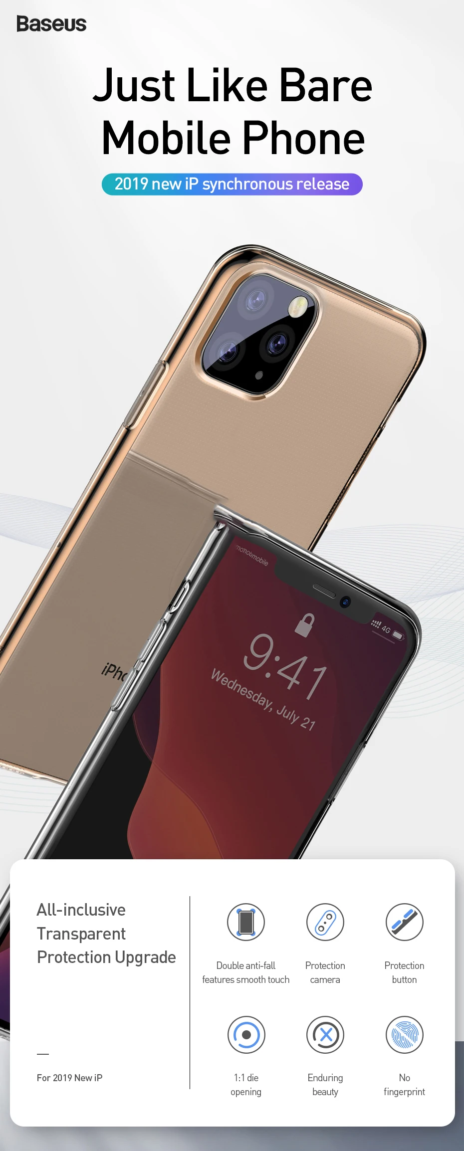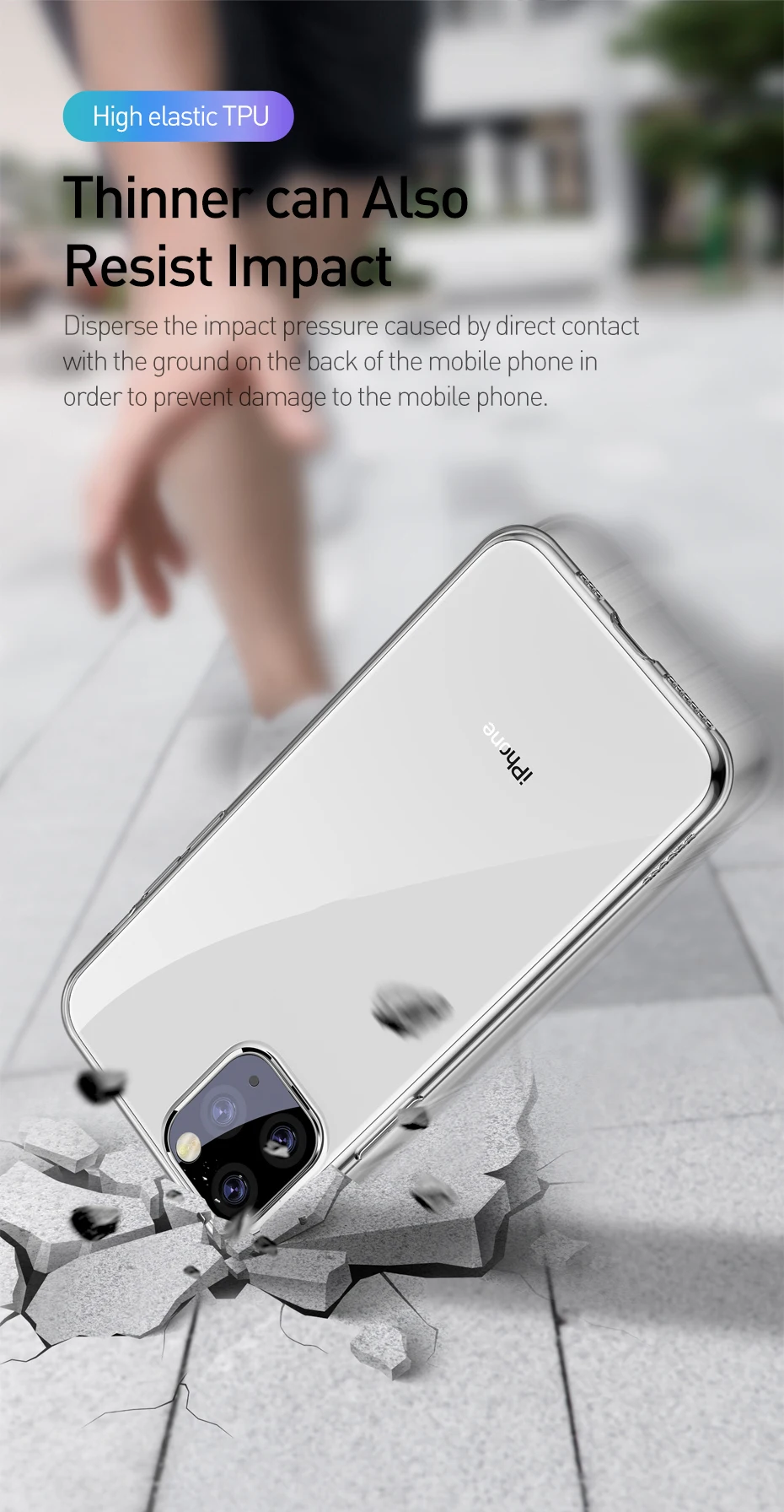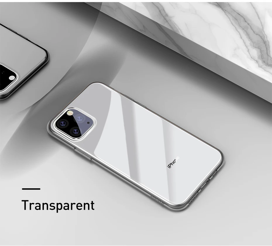 Baseus-funda de silicona para iPhone 11 Pro Max, carcasa trasera transparente delgada de TPU, anticaída