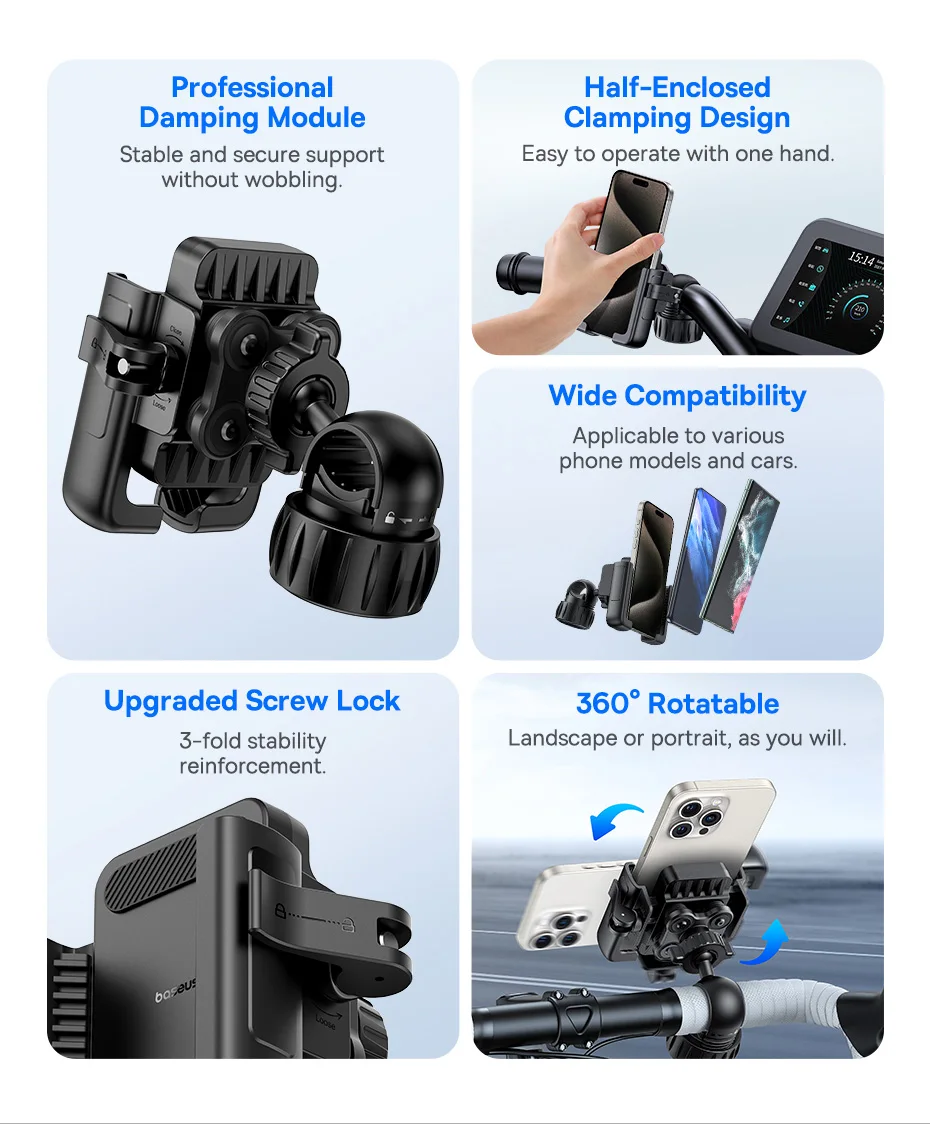 Comprar Baseus-funda con soporte para teléfono de bicicleta, soporte para bicicleta de ciclismo para iPhone, Xiaomi, bolsa con soporte para teléfono móvil, manillar de bicicleta giratorio de 360 grados