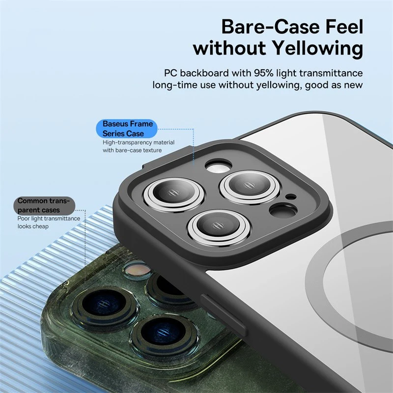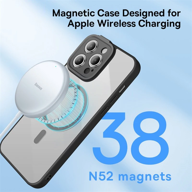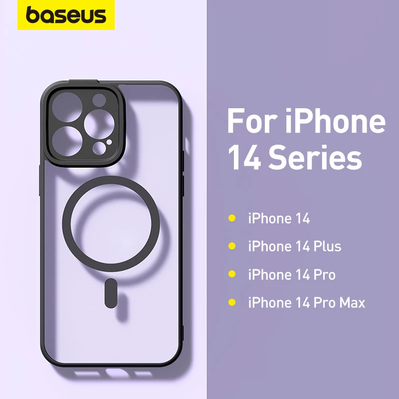 Comprar Baseus-funda de teléfono magnética para iPhone 14 Pro Max, carcasa trasera magnética transparente a prueba de golpes, iP14 Plus, 2022