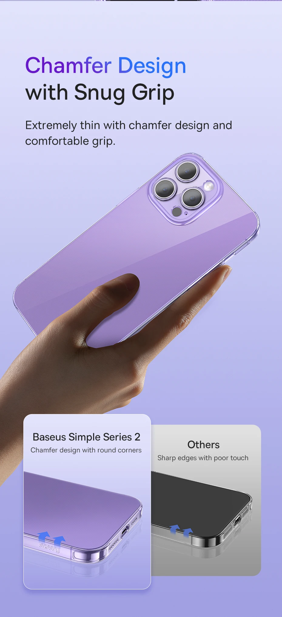 Baseus serie simple 2: Diseño de chaflán con esquinas redondeadas.