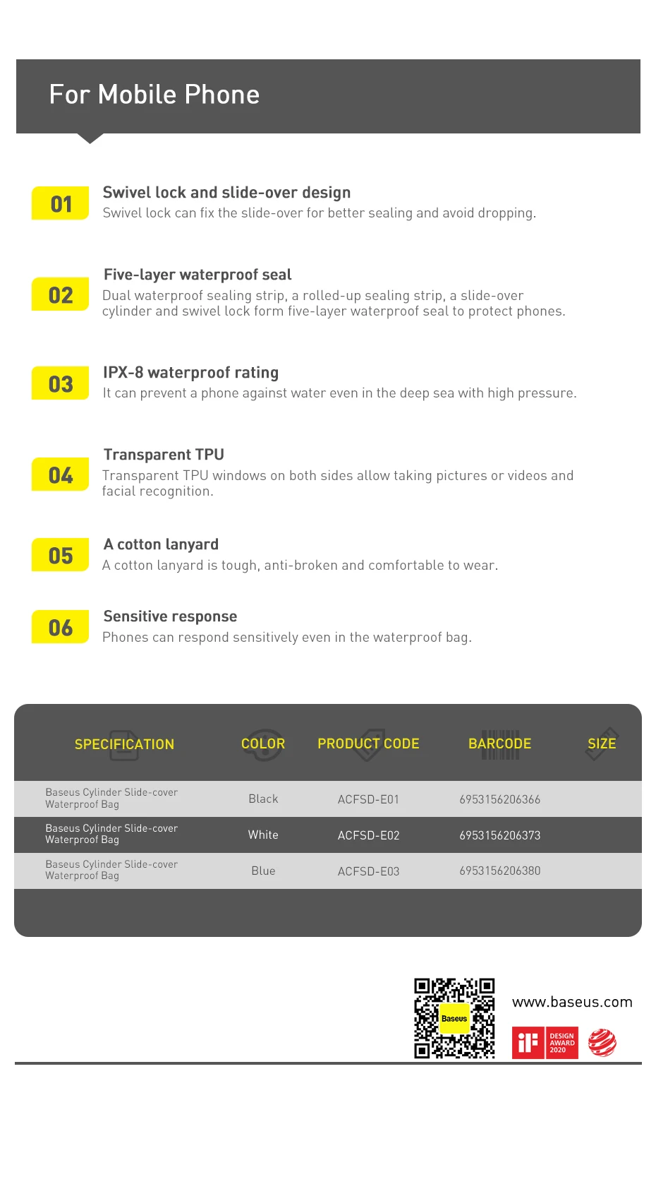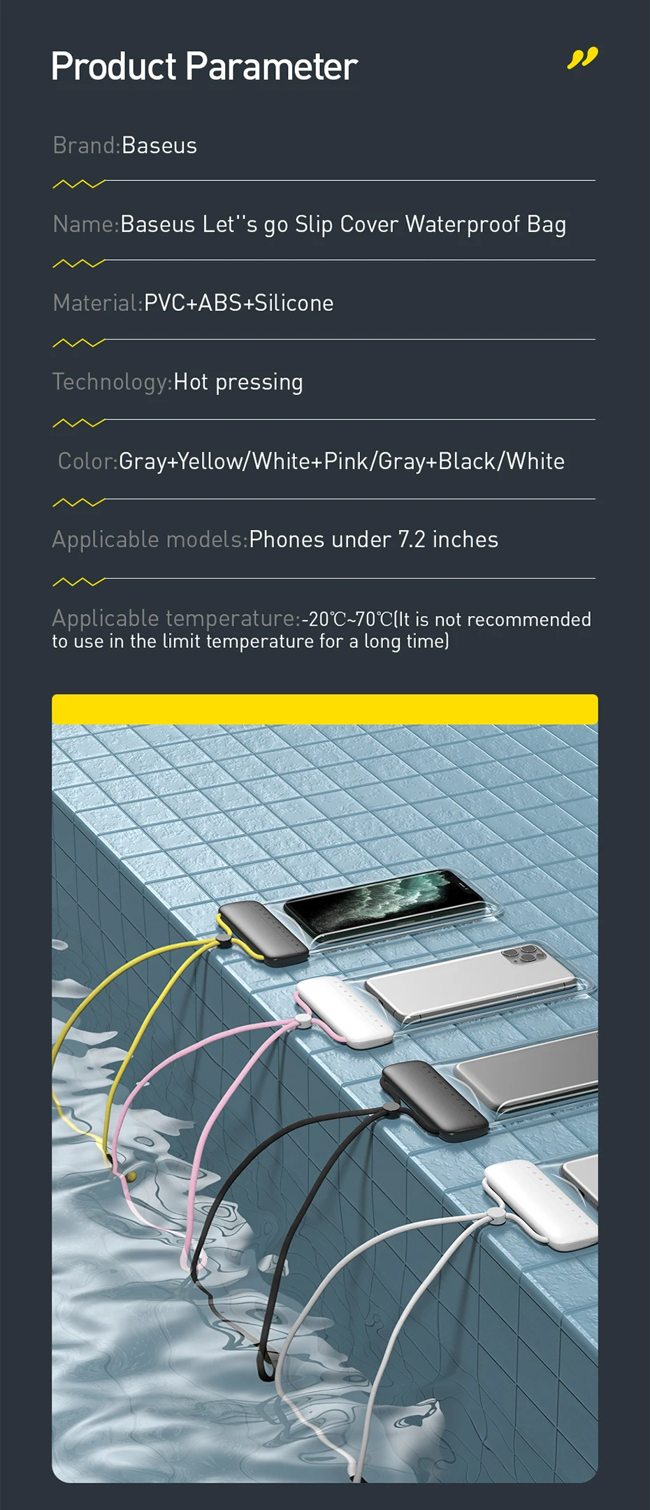 Comprar Baseus-funda Universal impermeable para teléfono móvil, bolsa de natación a prueba de agua IPX8 para iPhone 12 Pro Max X Xiaomi Samsung