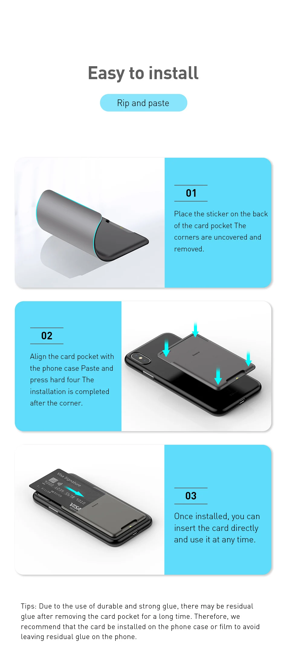 Baseus-funda Universal con ranura trasera para teléfono, funda tipo billetera para tarjetas para iPhone X Xs, pegatina de lujo 3M, funda de silicona para teléfono Samsung Xiaomi