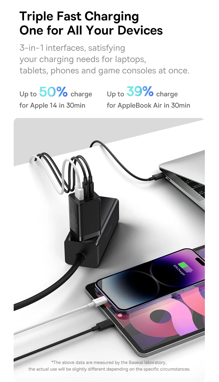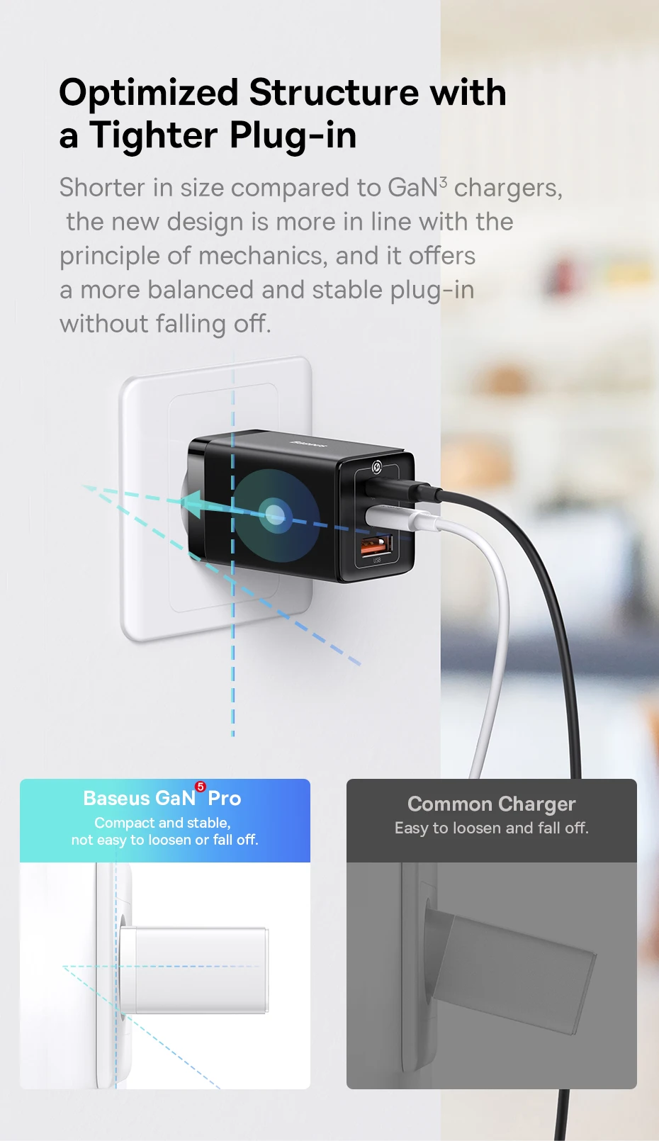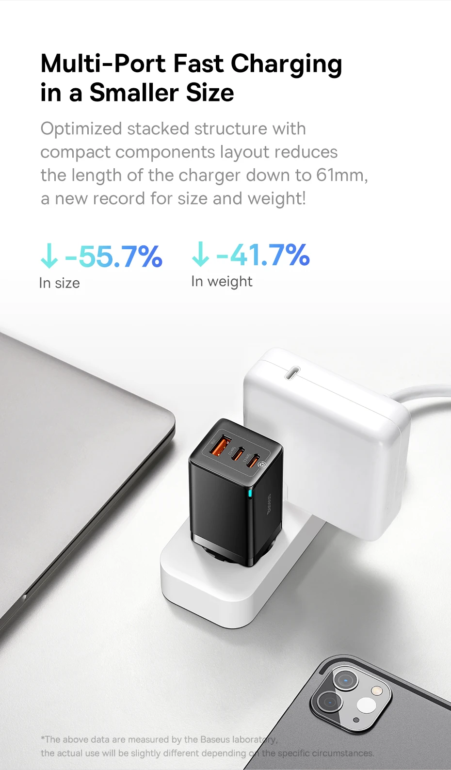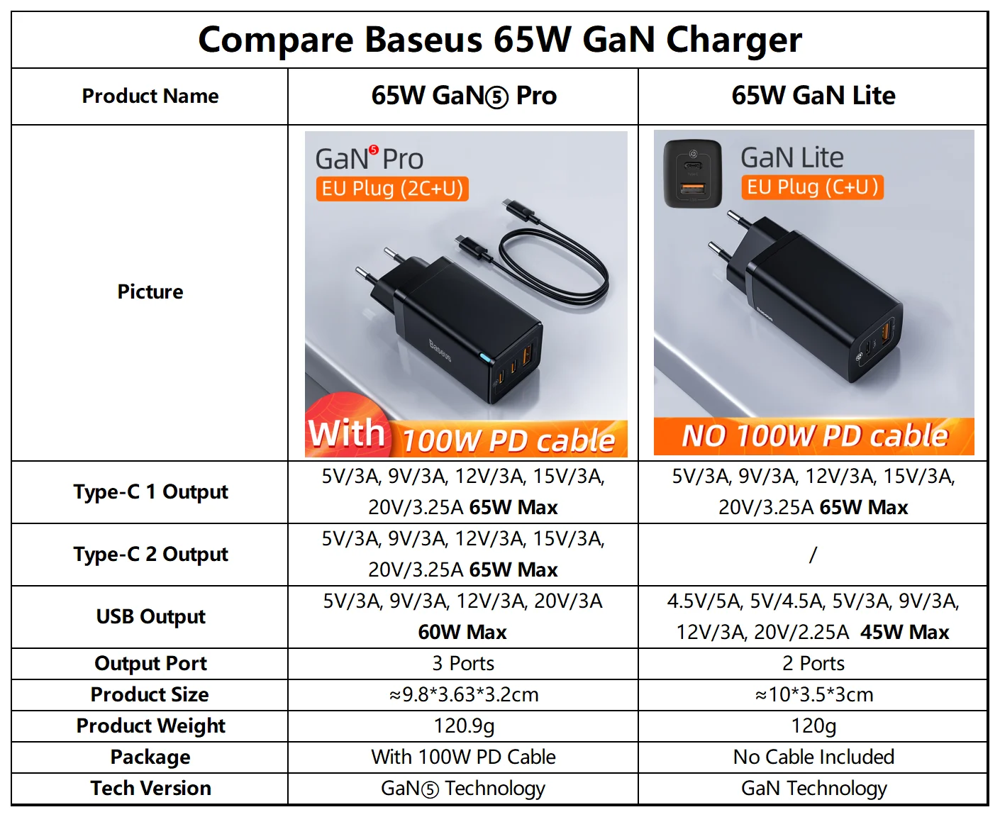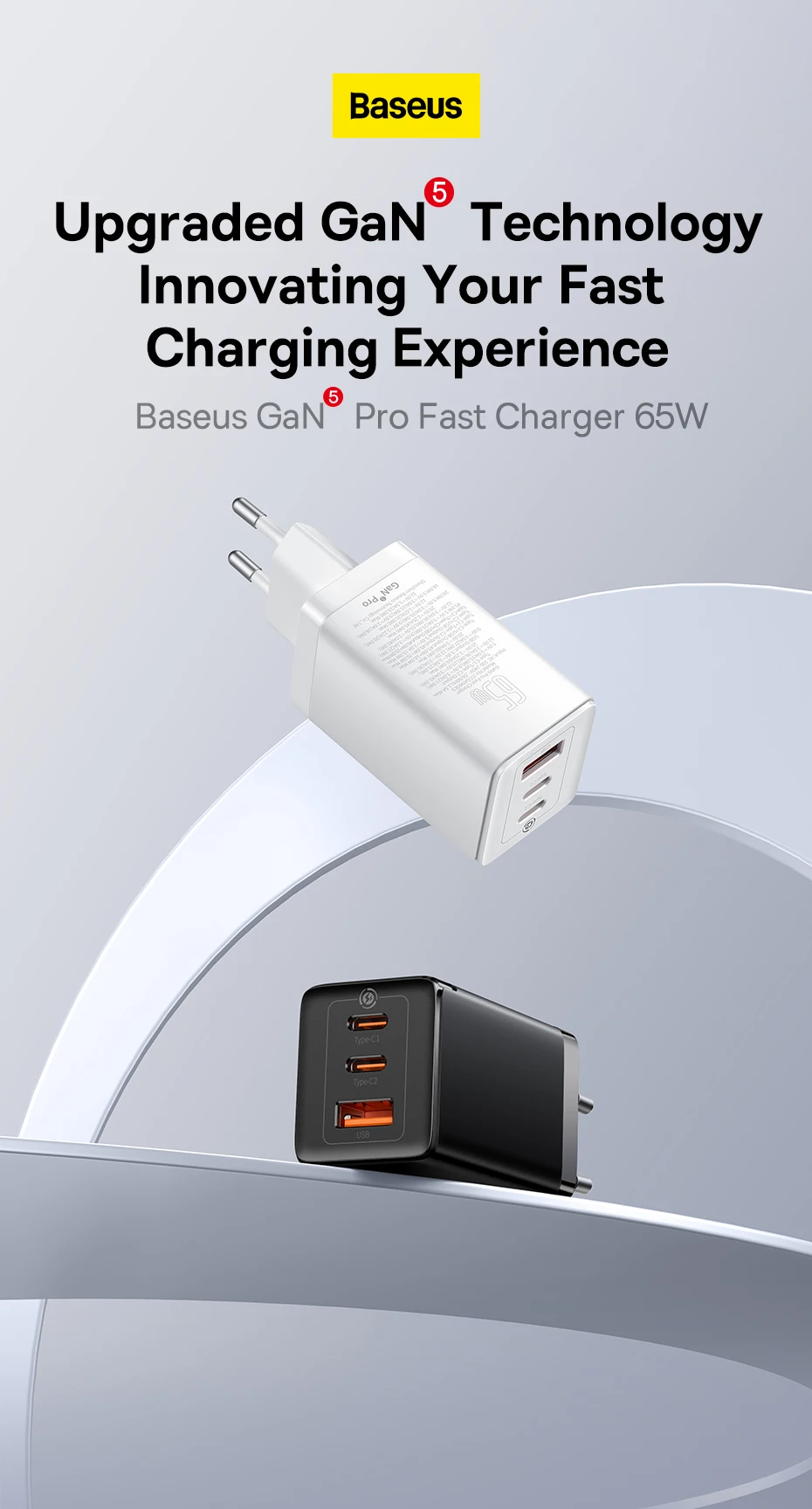 Comprar Baseus GaN 65W cargador USB C carga rápida 4,0 3,0 QC4.0 QC PD3.0 PD USB-C tipo C cargador USB rápido para iPhone 16 15 Pro MacBook