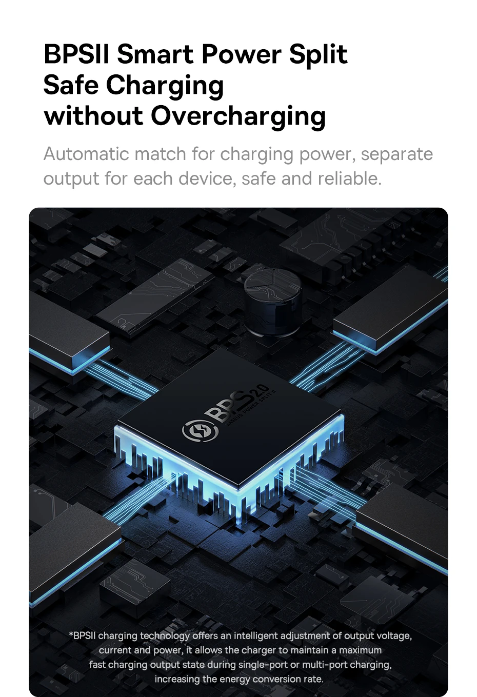 · Dos puertos admiten 65 W (máx.) cuando se carga al mismo tiempo