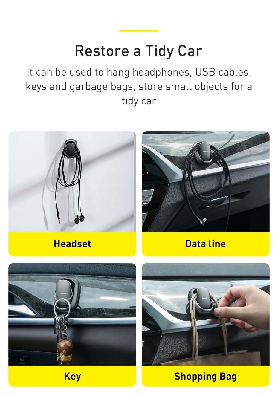 Comprar Baseus-gancho para colgar llaves de coche, gancho 3M, soporte adhesivo, Mini sujetador para Cable de auriculares, organizador, 1 par