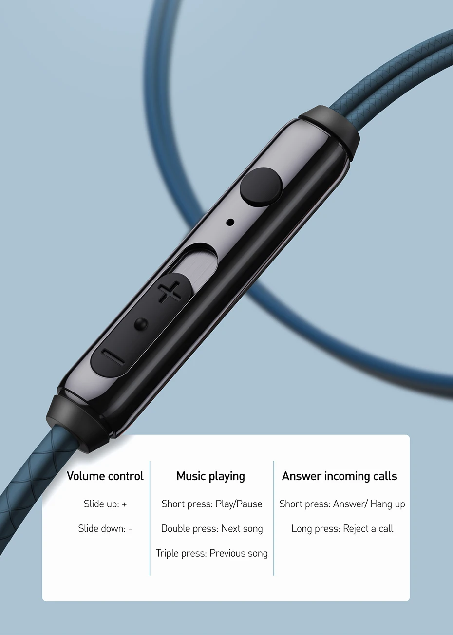 Presione un botón para responder una llamada o reproducir música a través de un controlador de cable integrado. Deslice suavemente un botón para elegir el volumen como desee mediante un ajuste continuo.