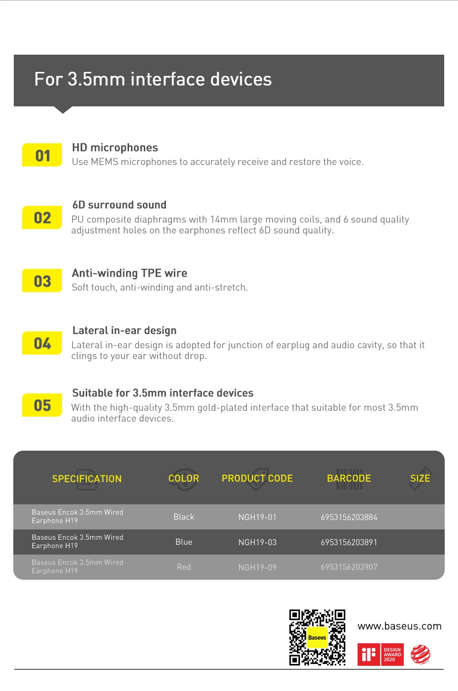 Comprar Baseus H19 auriculares estéreo auriculares intrauditivos 3,5mm Jack cable auricular con micrófono para iPhone 6s Xiaomi Samsung fone de ouvido