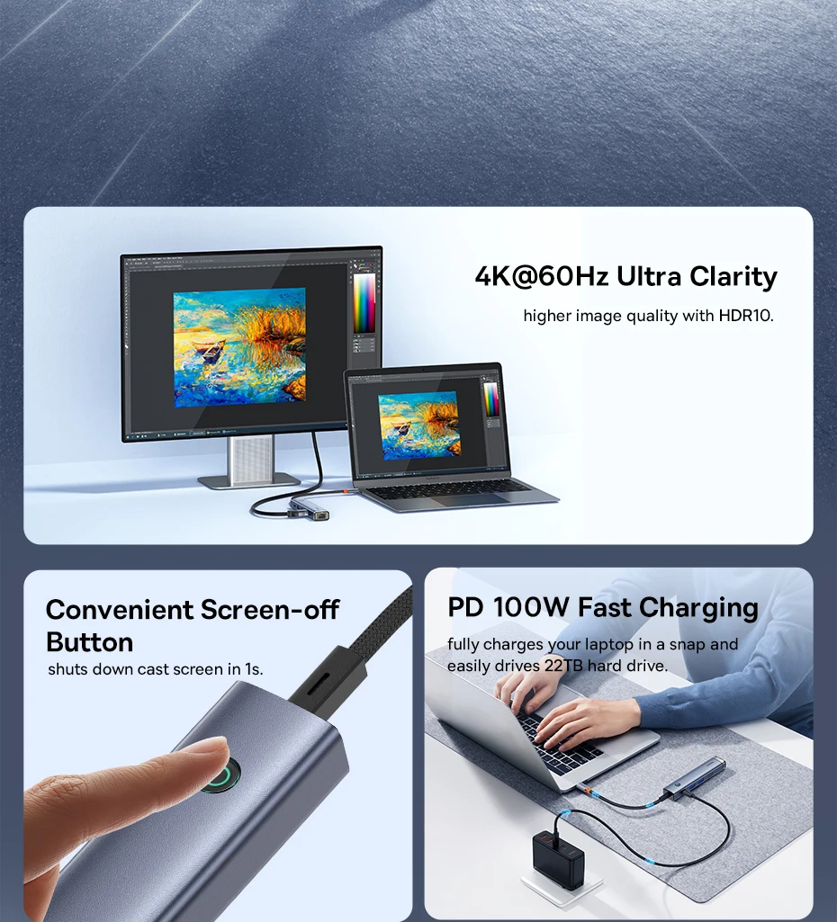4. Carga rápida PD 100W, carga completamente tu ordenador portátil en un instante y conduce fácilmente un disco duro de 20TB.