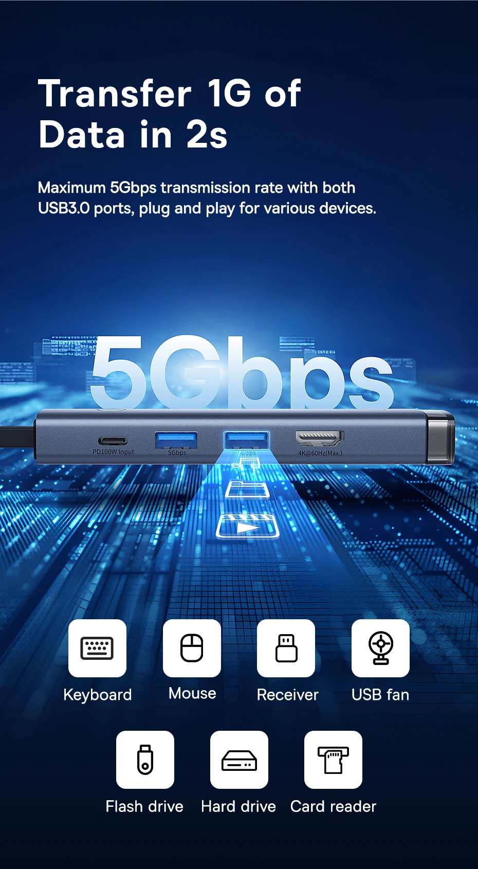Expansión de puertos 5 en 1 para diferentes escenarios,