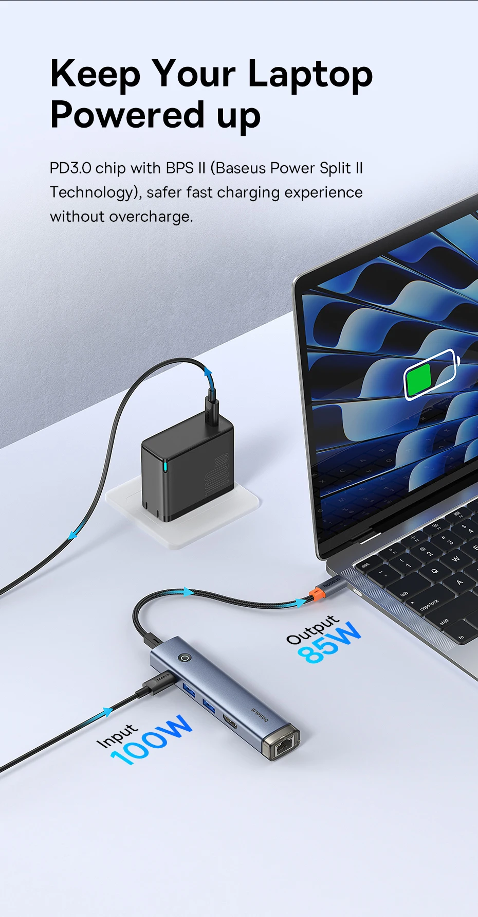 Chip PD3.0 con BPS II (tecnología Baseus Power Split II),