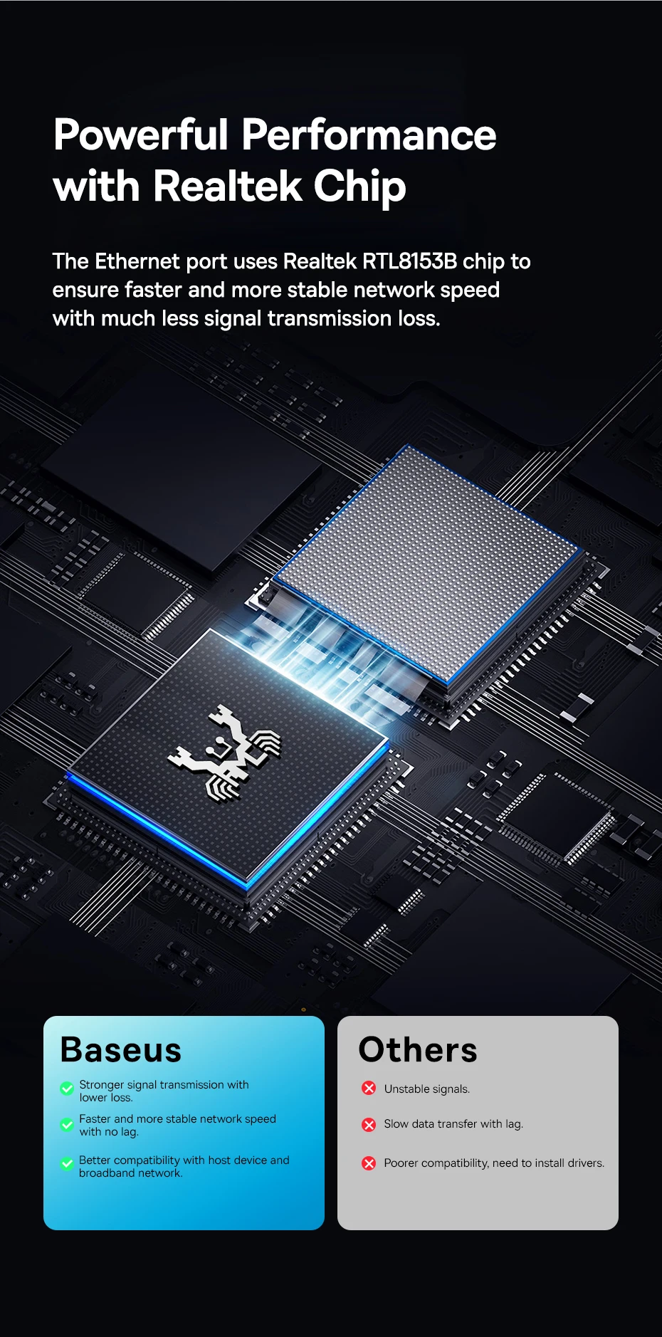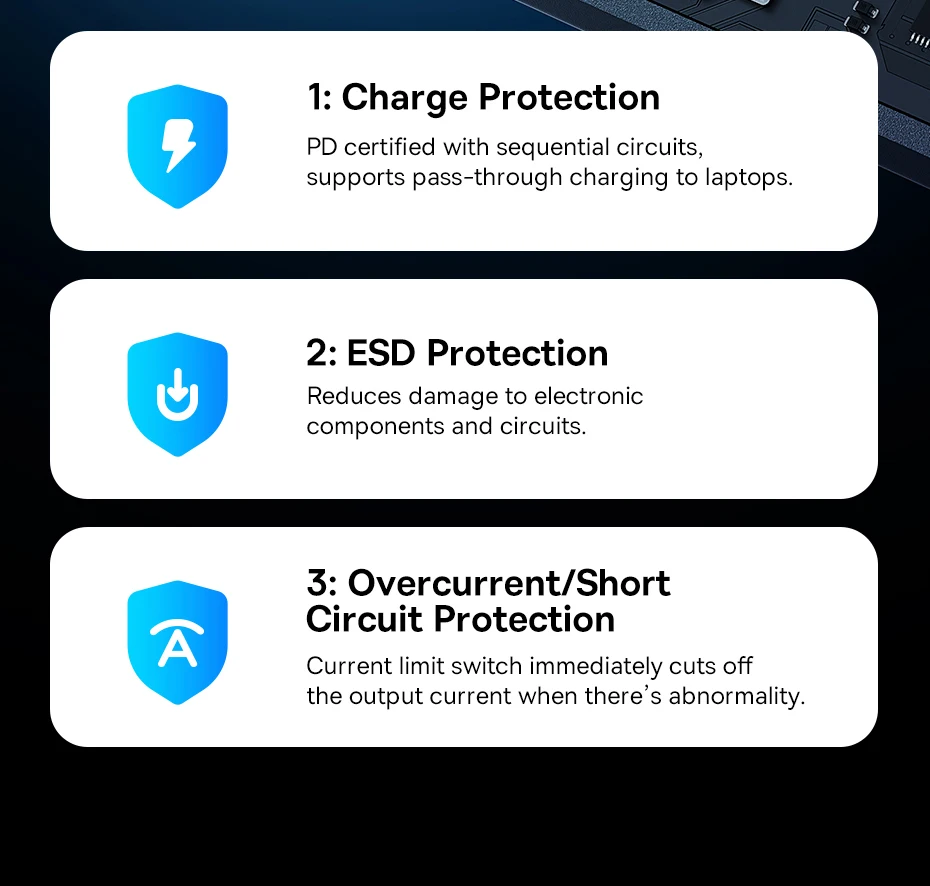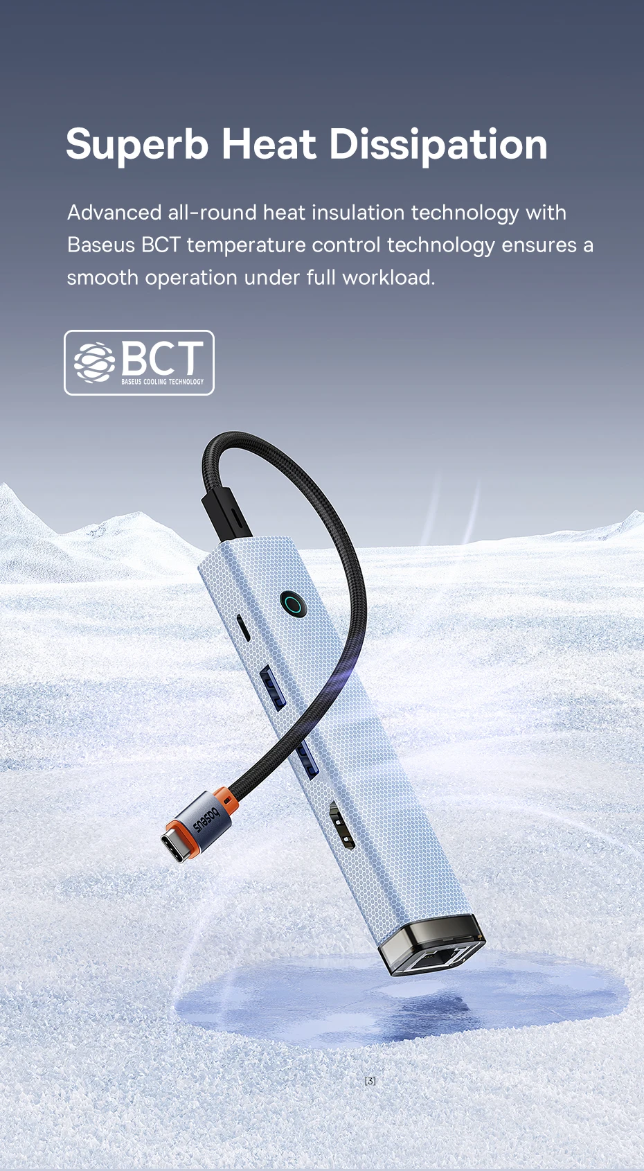 La tecnología de control de temperatura Baseus BCT garantiza un funcionamiento sin problemas bajo una carga de trabajo completa.