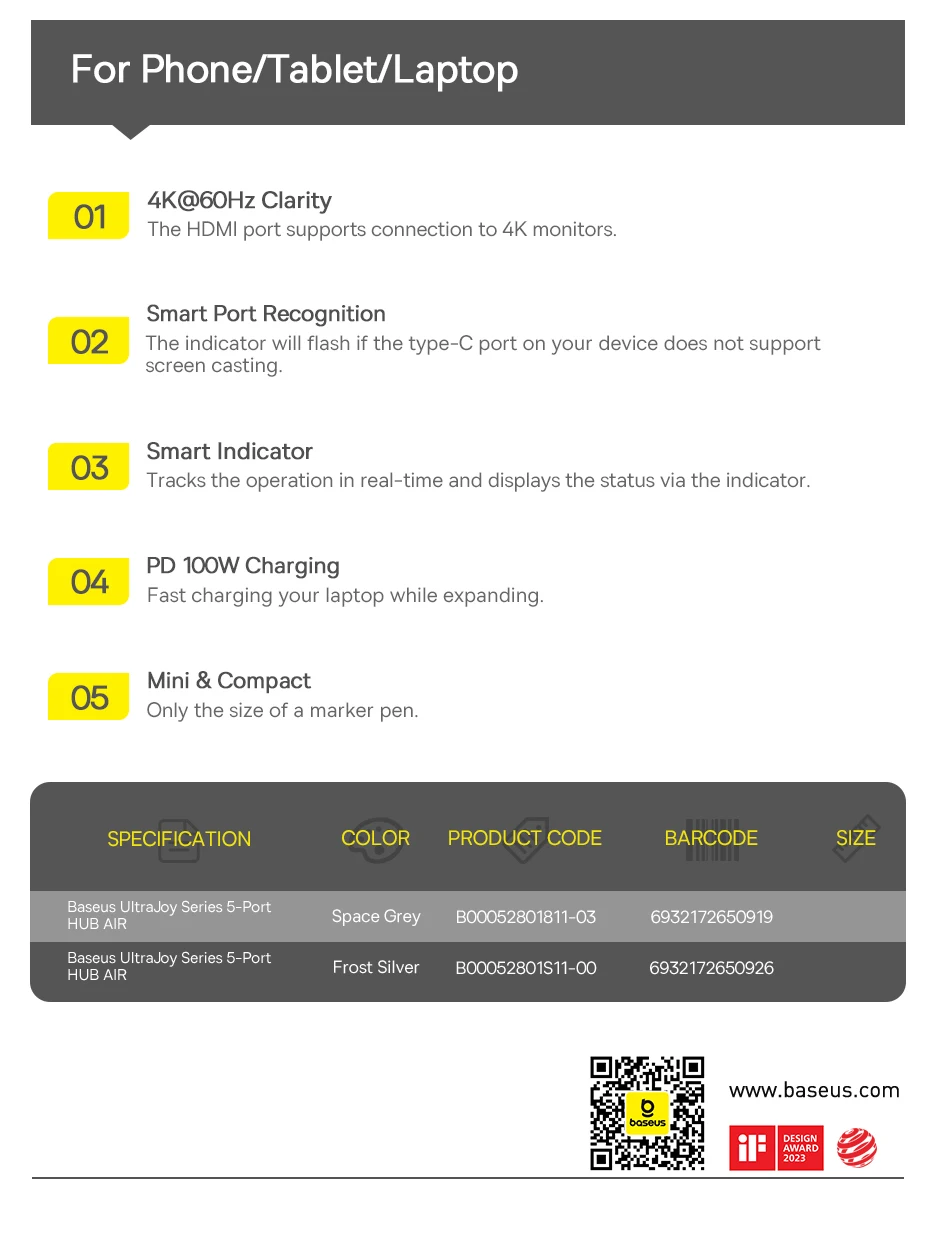 1. Nombre: serie Baseus UltraJoy de 5 puertos HUB AIR