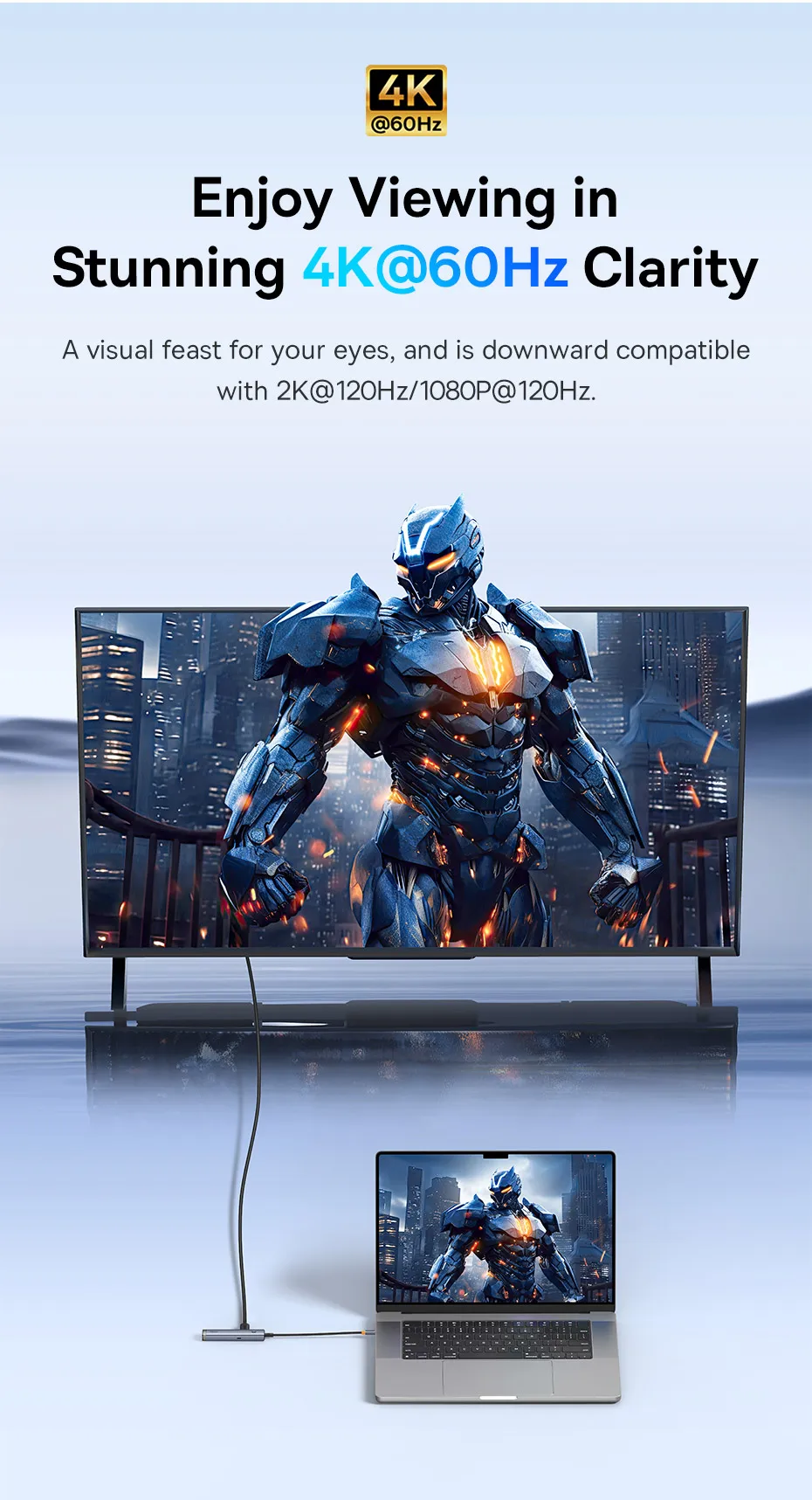 Disfruta de la visualización en una claridad impresionante de 4K a 60Hz.