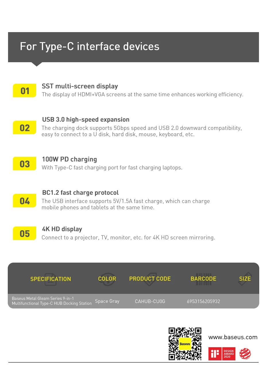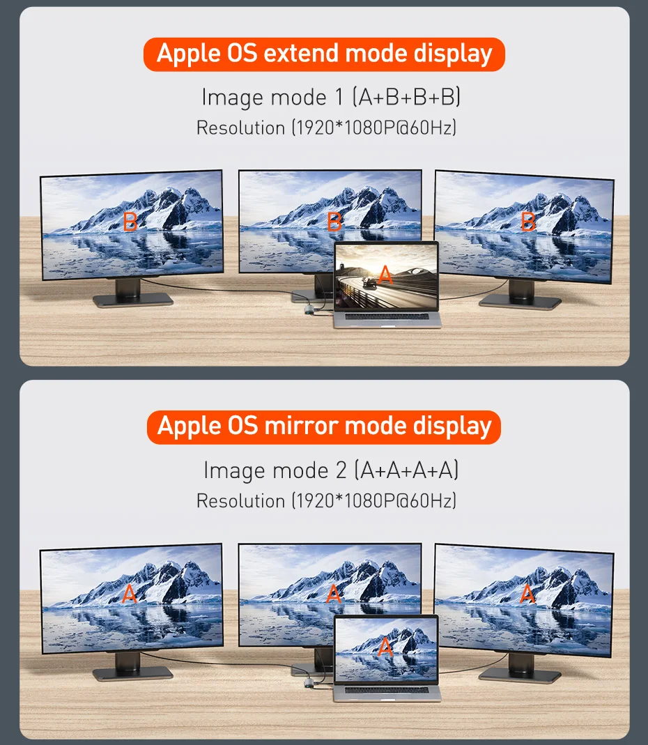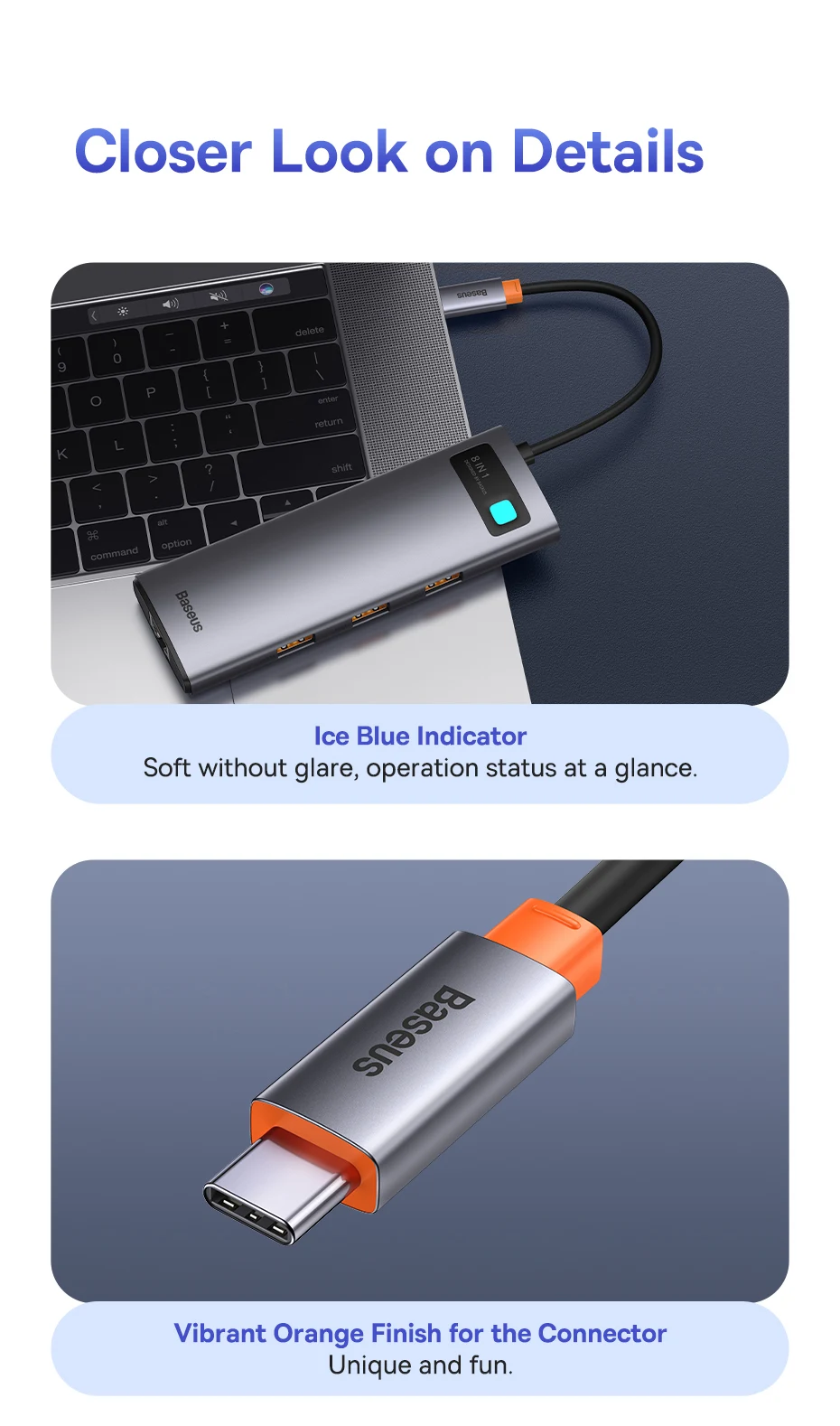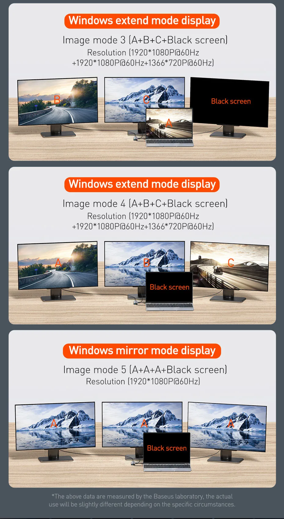 Si el puerto de USB-C de tu dispositivo es la versión DP1.2 (compatible con 4K @ 60Hz), al usar este concentrador Baseus, la resolución se adaptará automáticamente a 4K @ 30Hz.