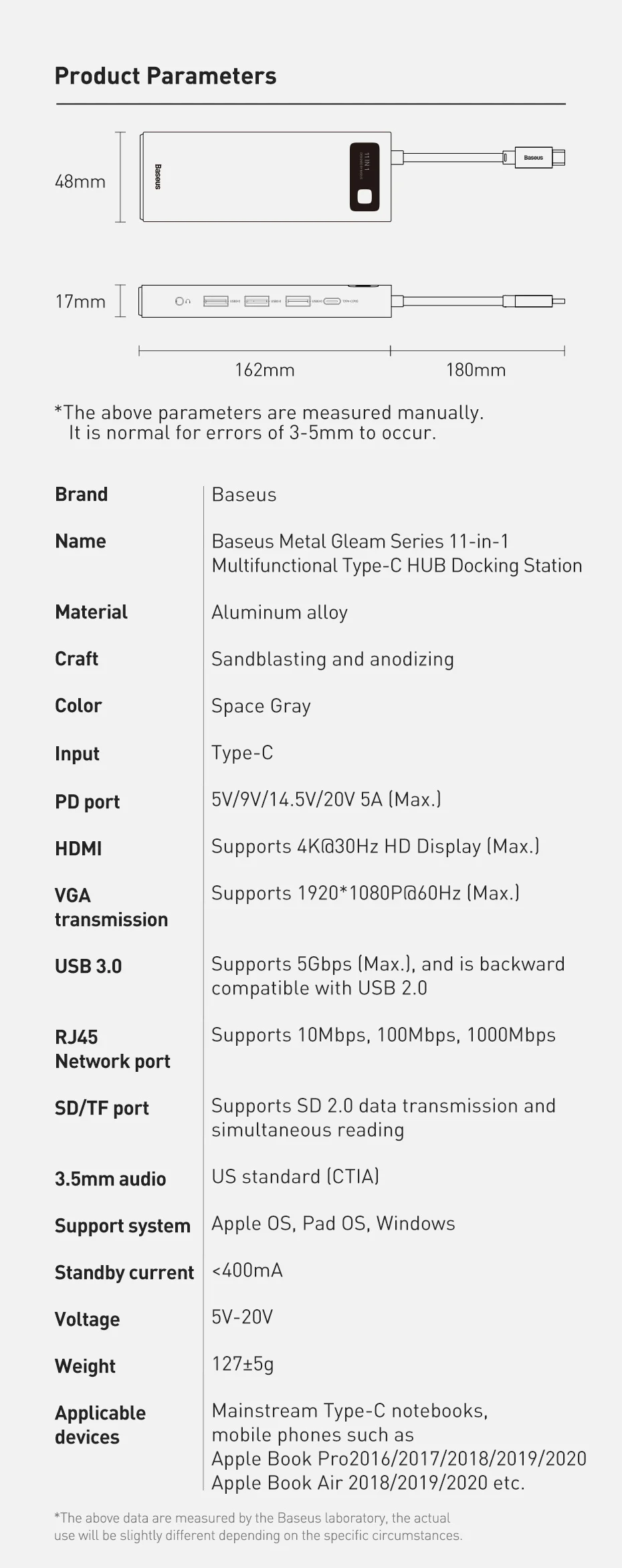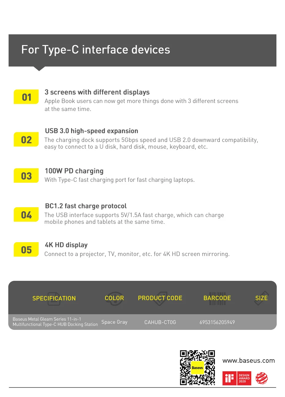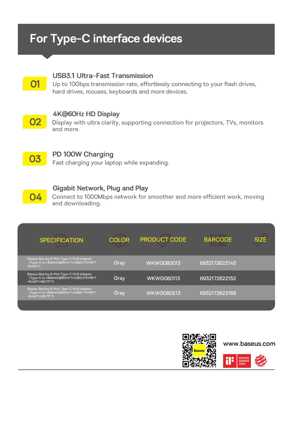 Si el puerto de USB-C de tu dispositivo es la versión DP1.2 (compatible con 4K @ 60Hz), al usar este concentrador Baseus, la resolución se adaptará automáticamente a 4K @ 30Hz.