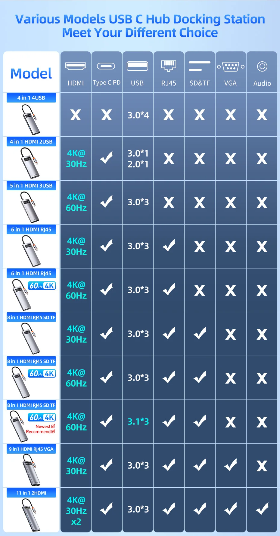 Hay 10 modelos opcionales, y diferentes modelos tienen diferentes puertos, elija el modelo adecuado antes de comprar: