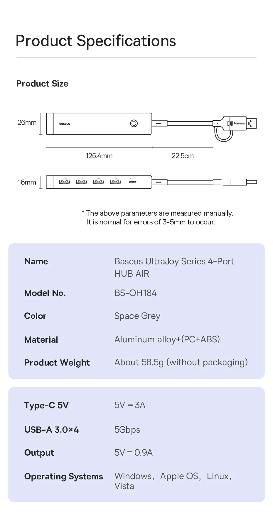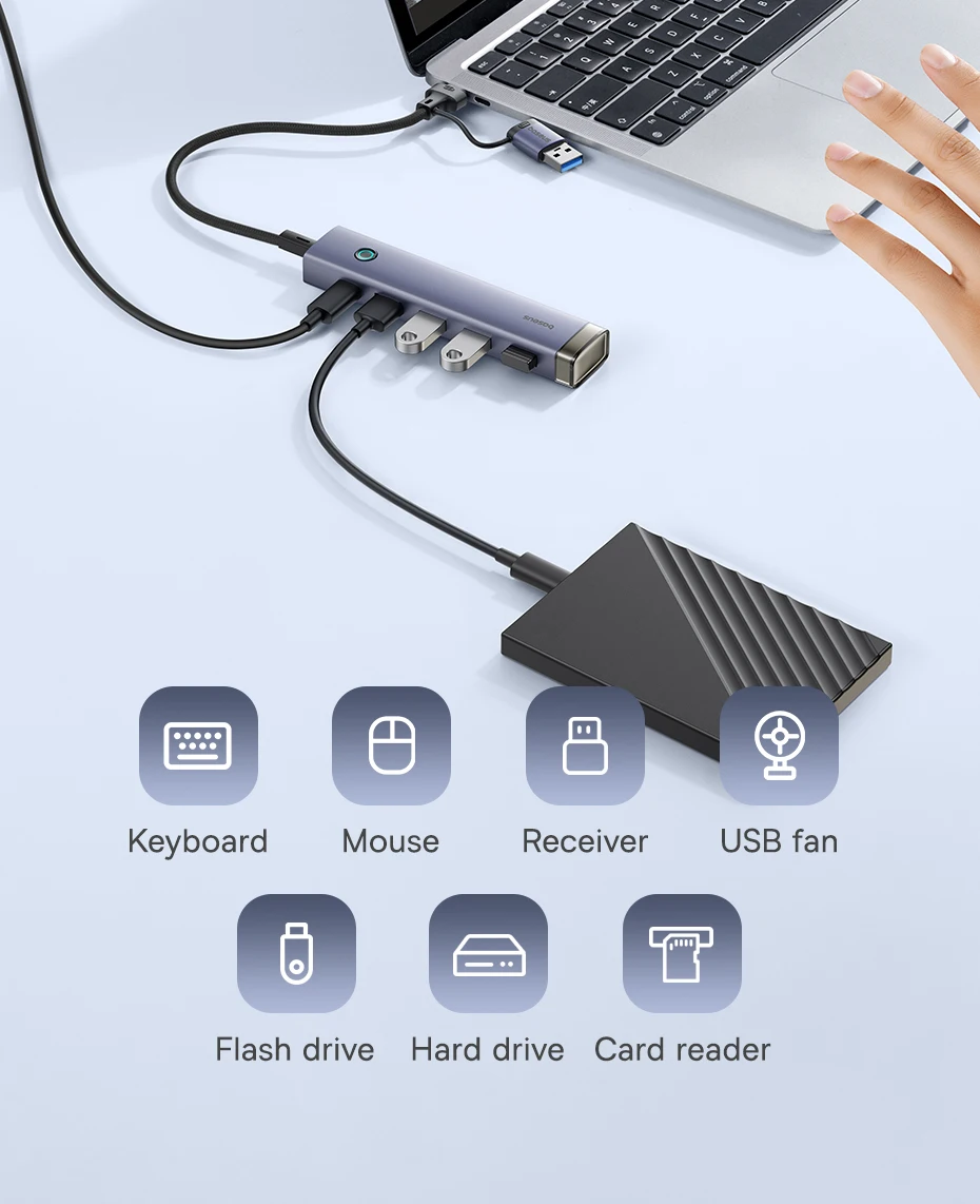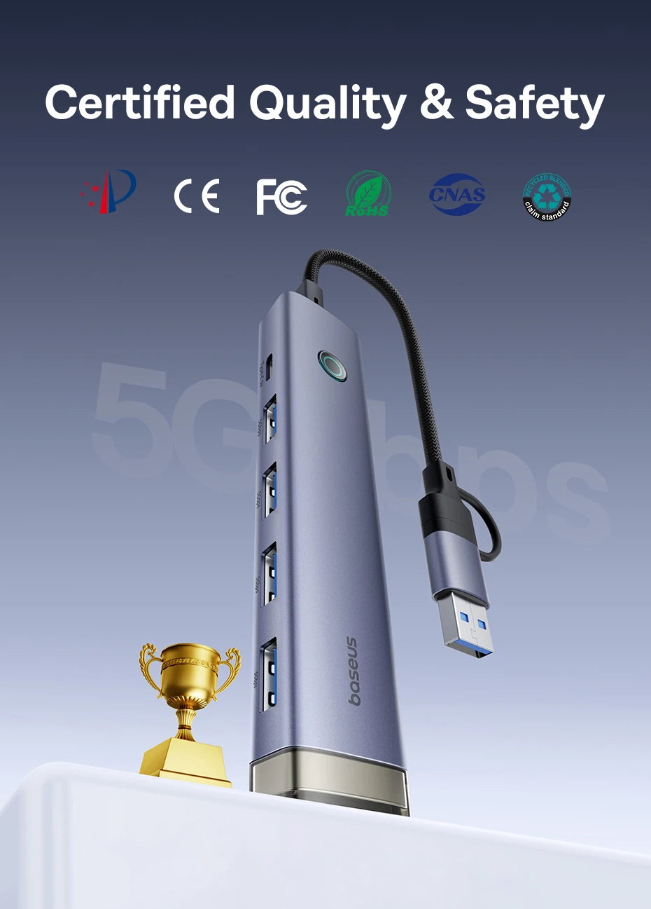Comprar Baseus-Hub USB tipo C a USB tipo C ultra Joy Series, 4 puertos, 4K, 5Gbps, lector SD para Macbook M2 M1, Accesorios para ordenador portátil, divisor
