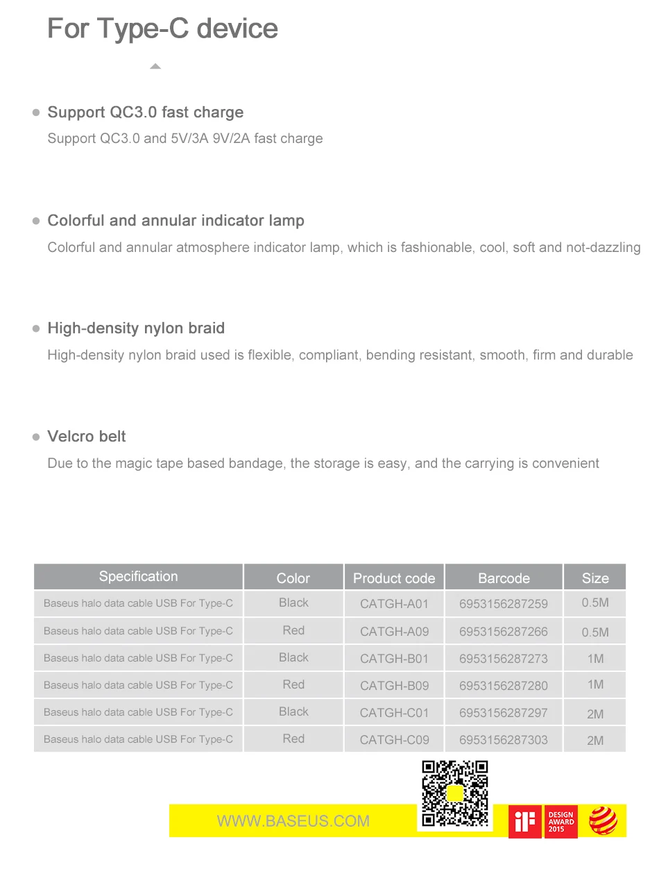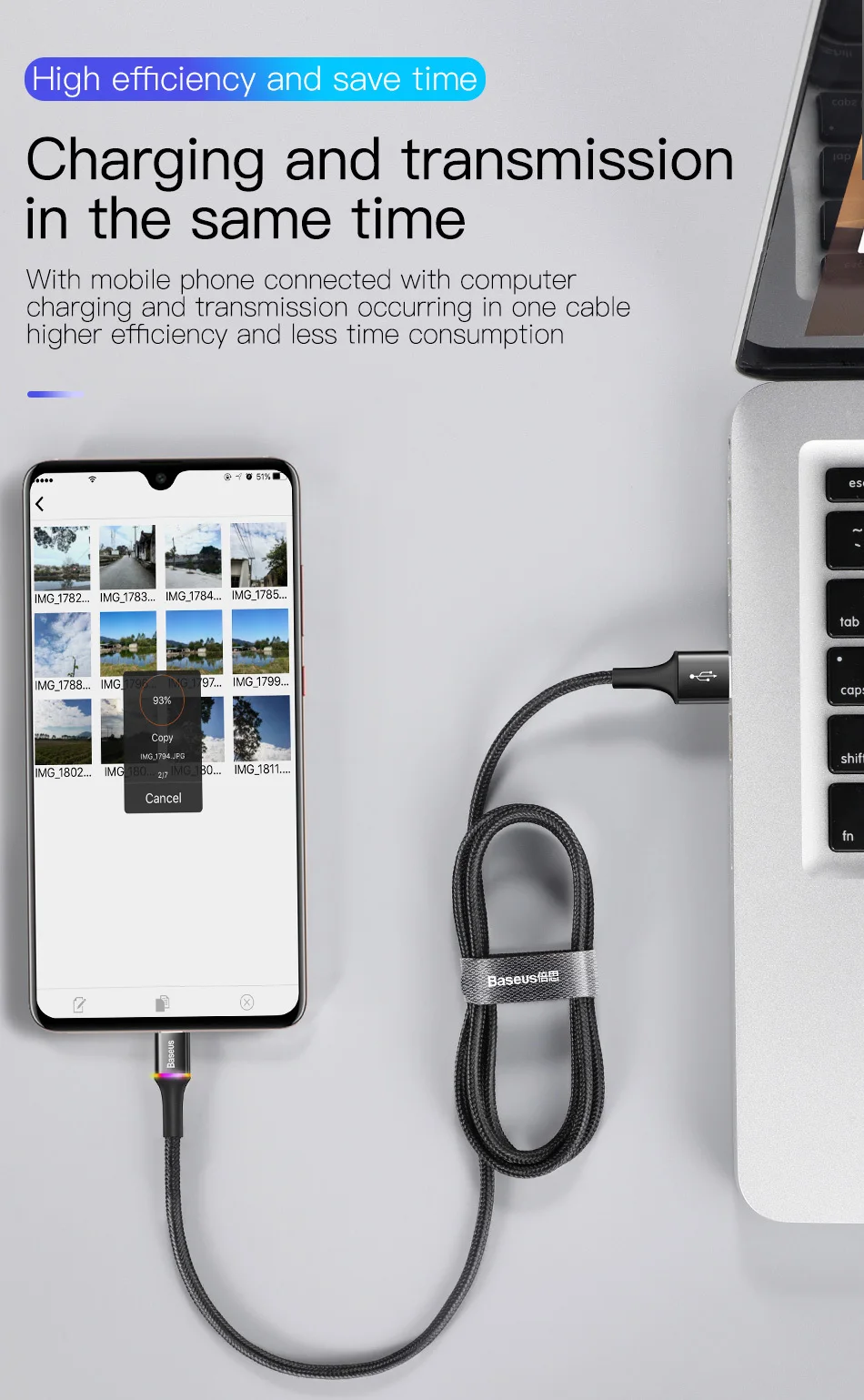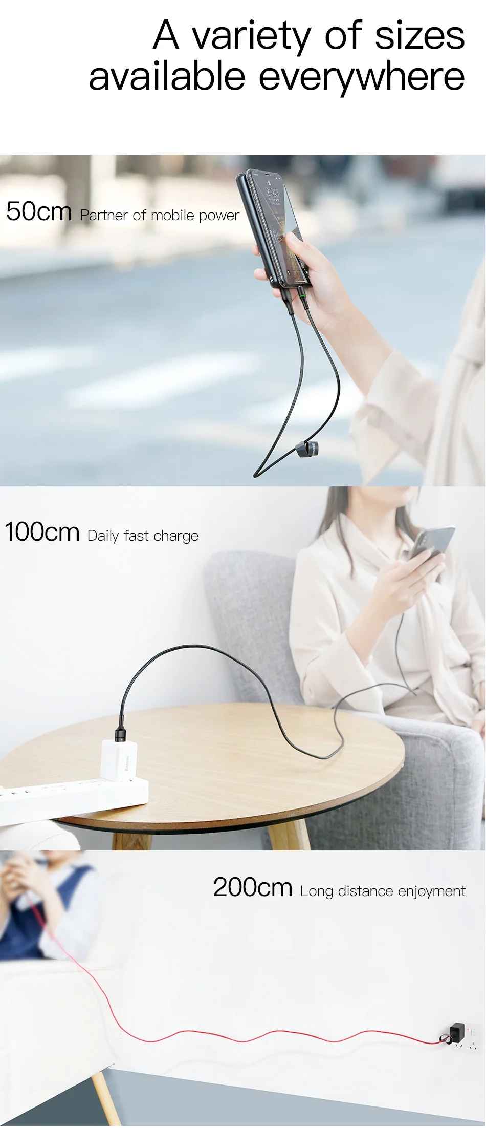 Comprar Baseus iluminación LED Cable USB tipo C cargador de carga rápida Cable de datos Micro USB para Samsung Xiaomi Redmi teléfono USBC Cable 3M