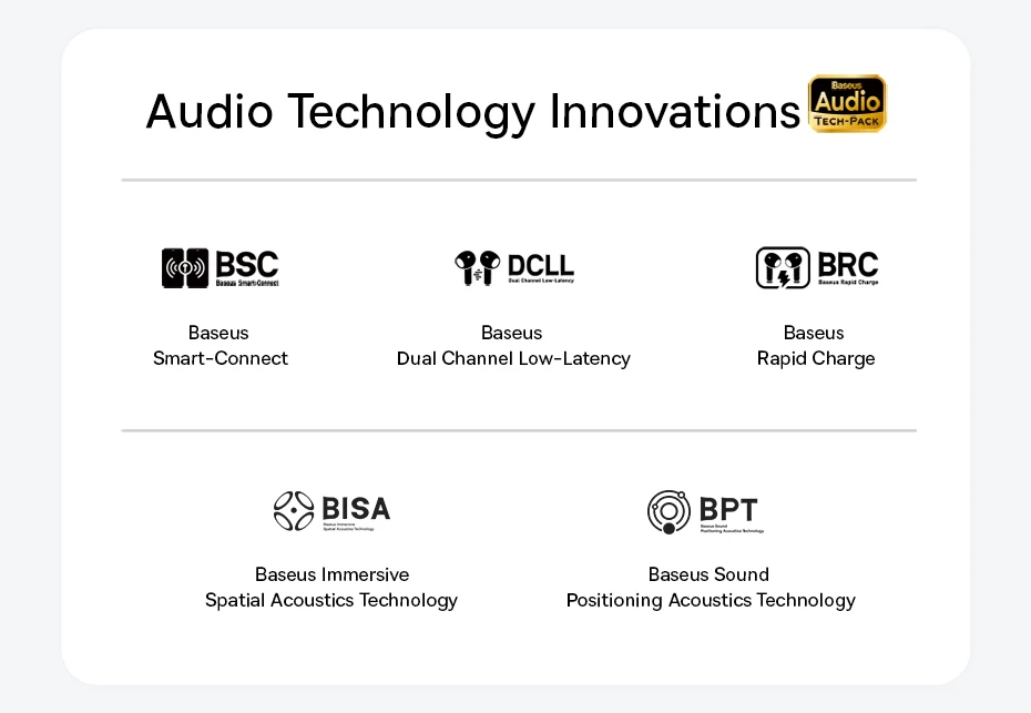 2.El tiempo de reproducción de la batería se basa en pruebas de reproducción continua de audio realizadas por Baseus Lab al 50% del volumen con el encendido de Bass Boost y Dolby Audio