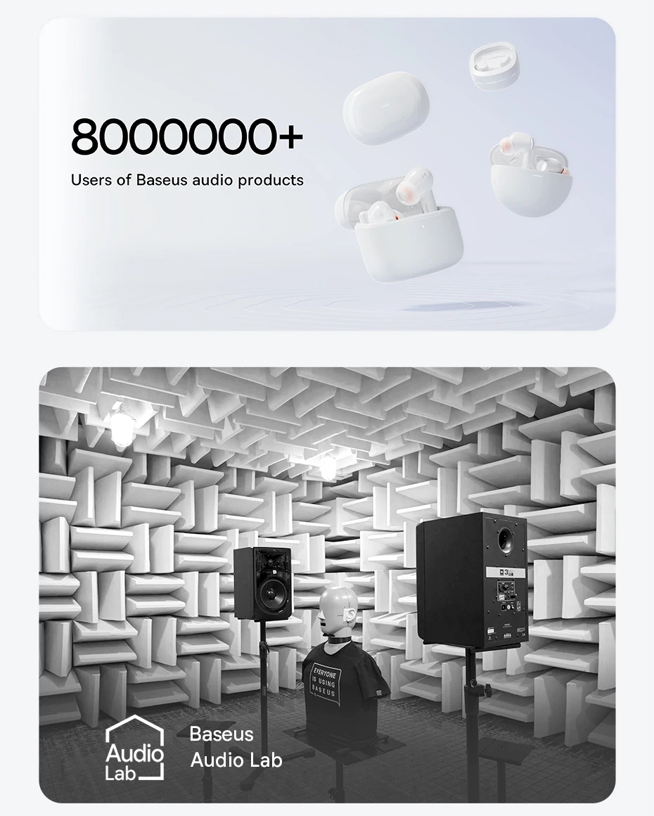 1.Probado en condiciones específicas en Baseus Lab, este producto logra una profundidad de reducción de ruido medida de hasta -50 dB.