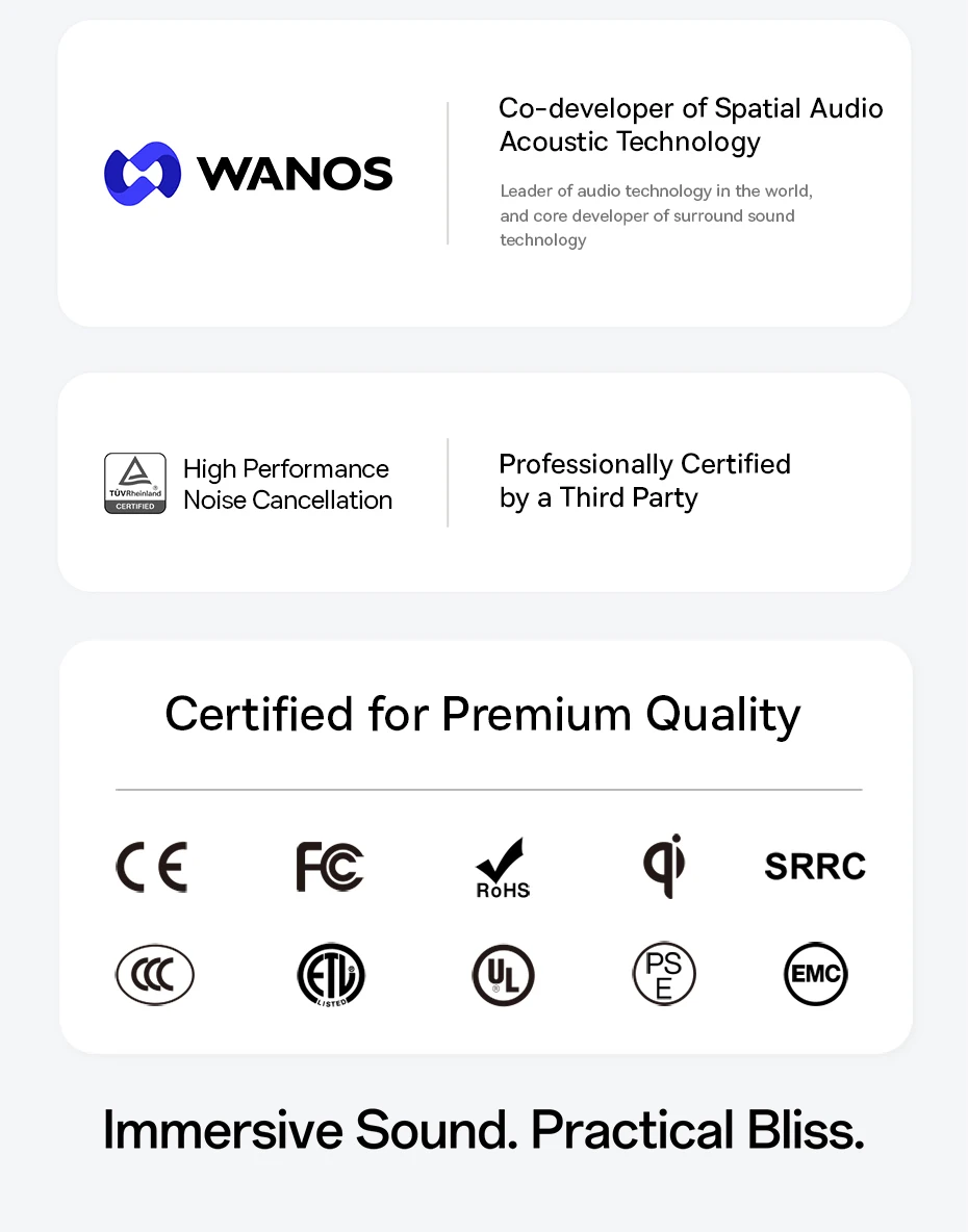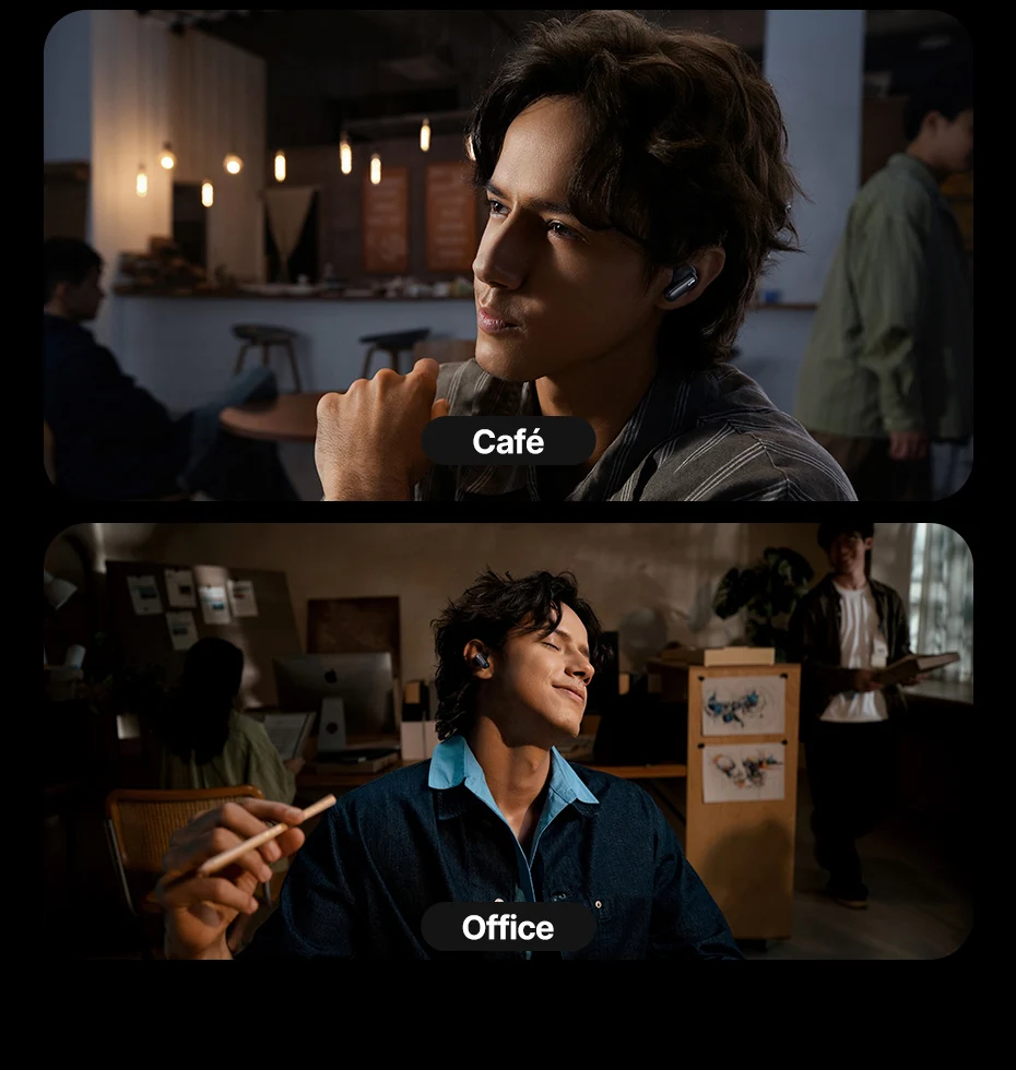 Las rejillas de ventilación acústicas ubicadas garantizan un equilibrio óptimo del flujo de aire, brindando una potente cancelación de ruido sin molestias de presión, para una escucha verdaderamente inmersiva en cualquier lugar.