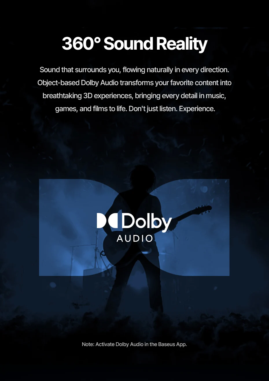 Dolby Audio basado en objetos transforma tu contenido favorito en impresionantes experiencias en 3D, dando vida a cada detalle de música, juegos y películas.No te acabas de escuchar.Experiencia.