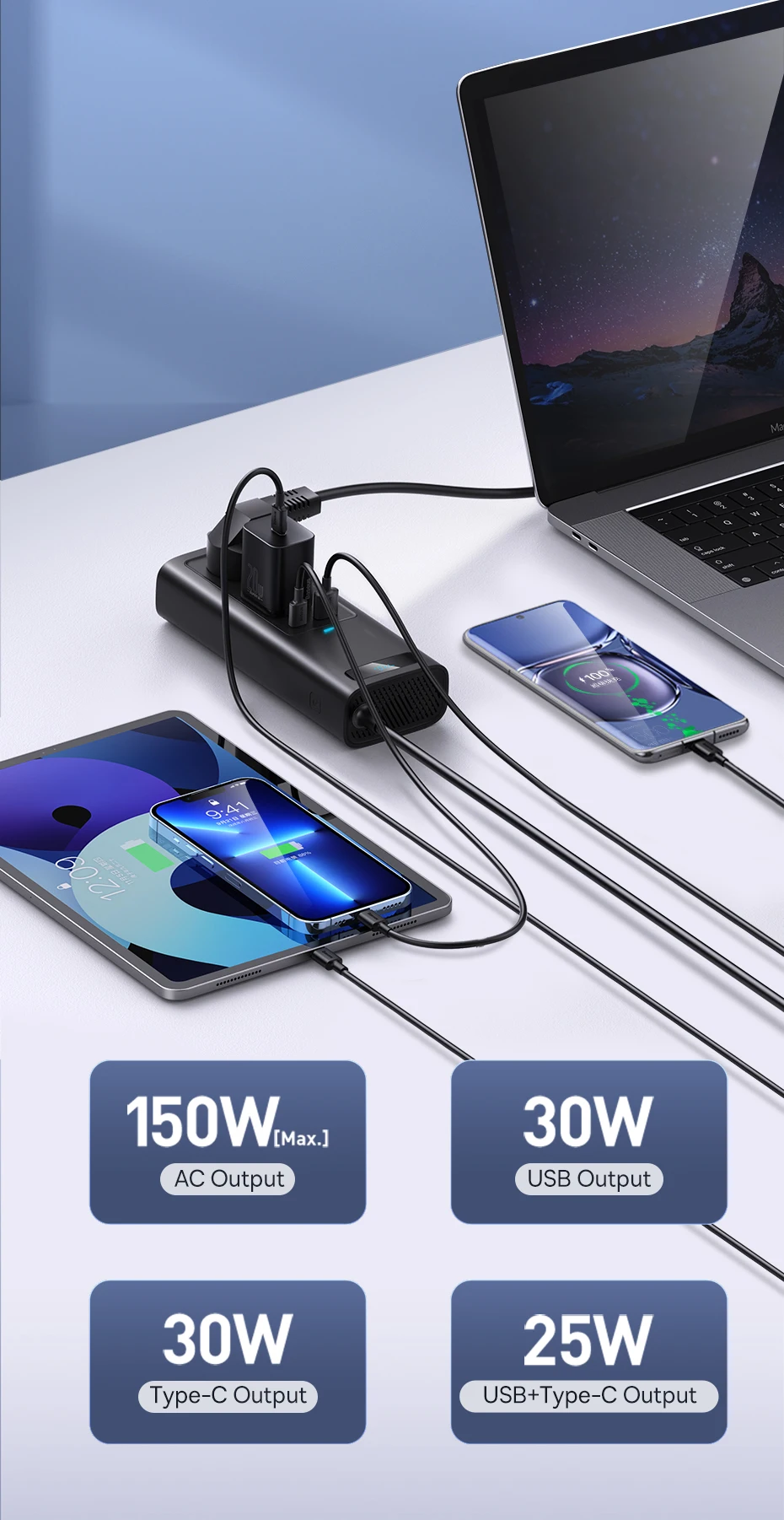 If you need to power up AC electrical equipment, long press the button on the side of the inverter until the AC indicator turns on, and then plug the equipment into the inverter.