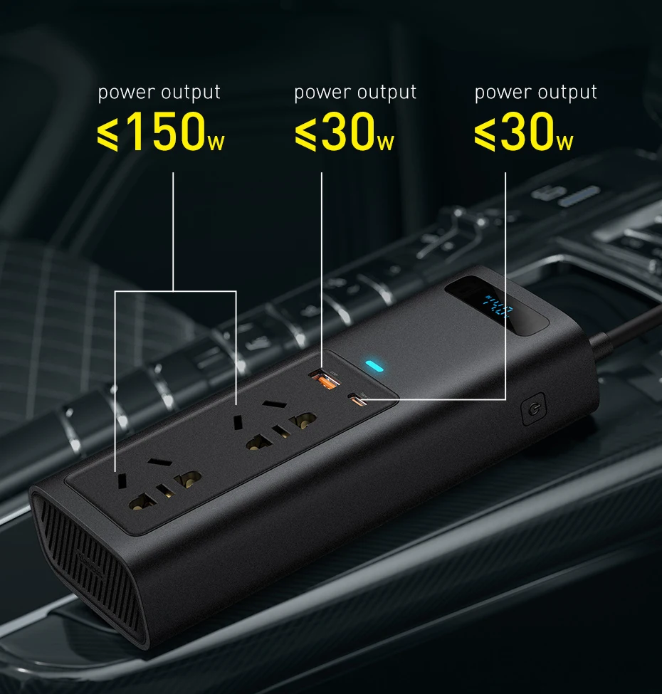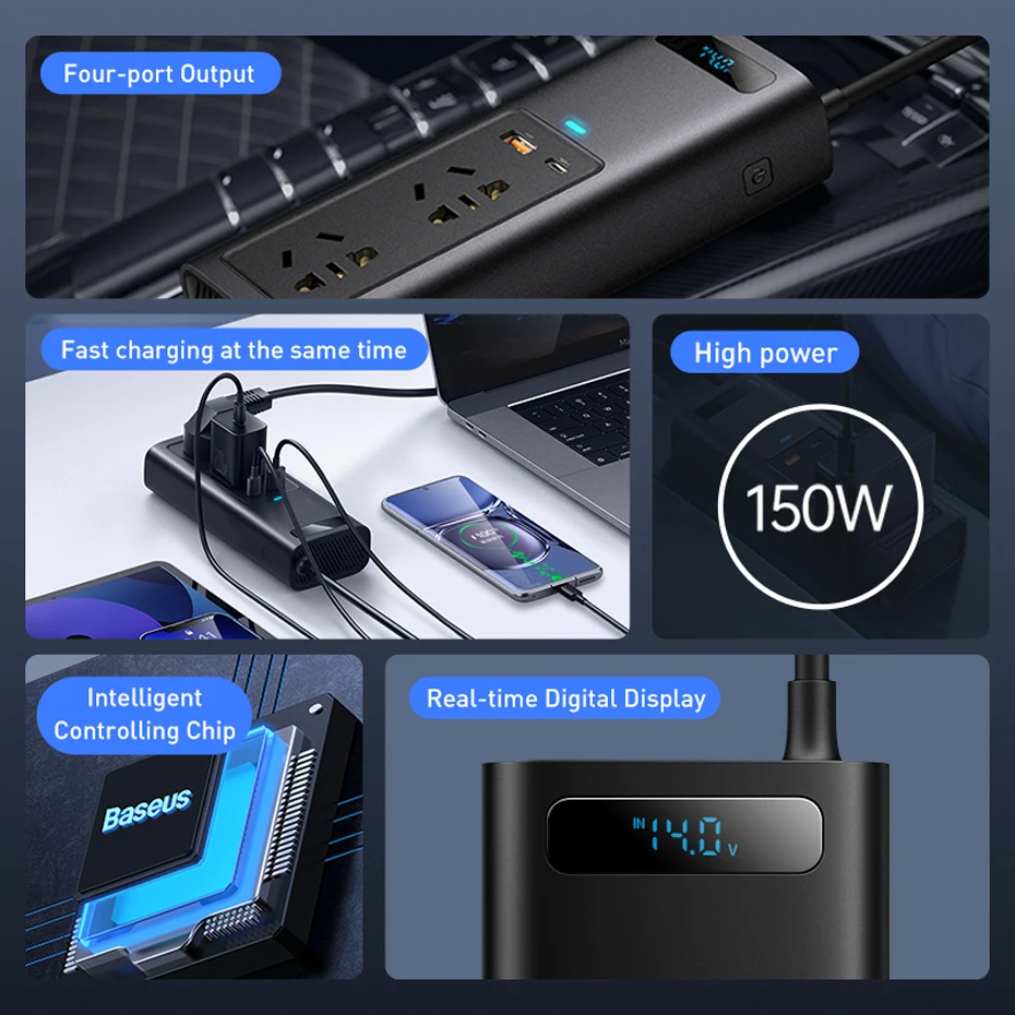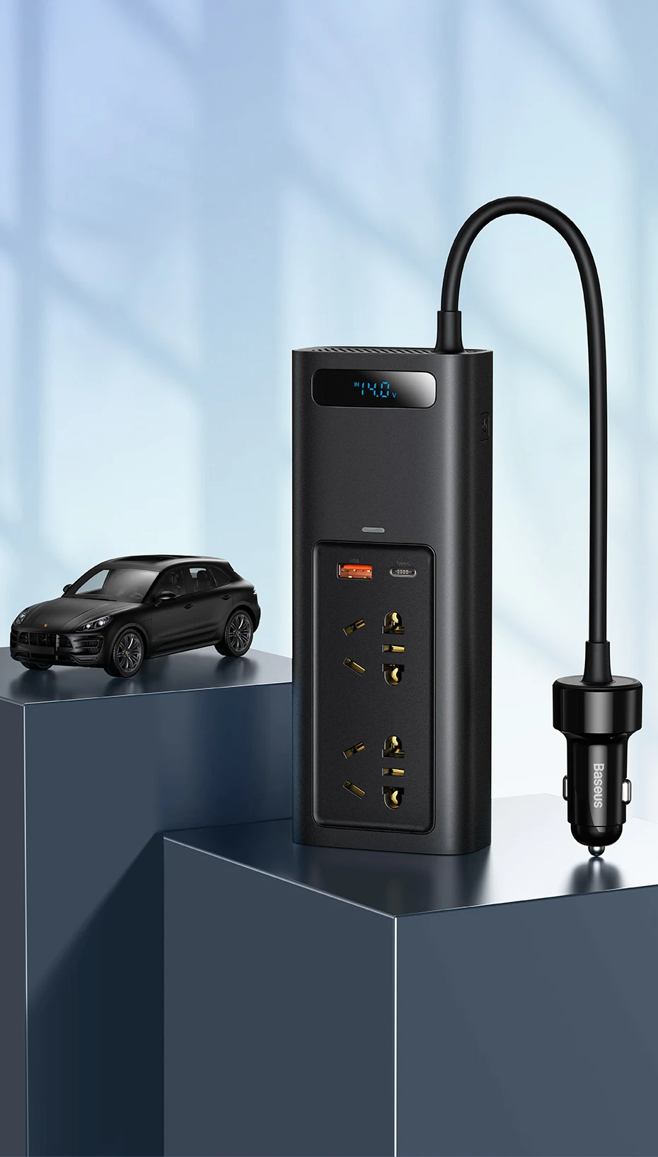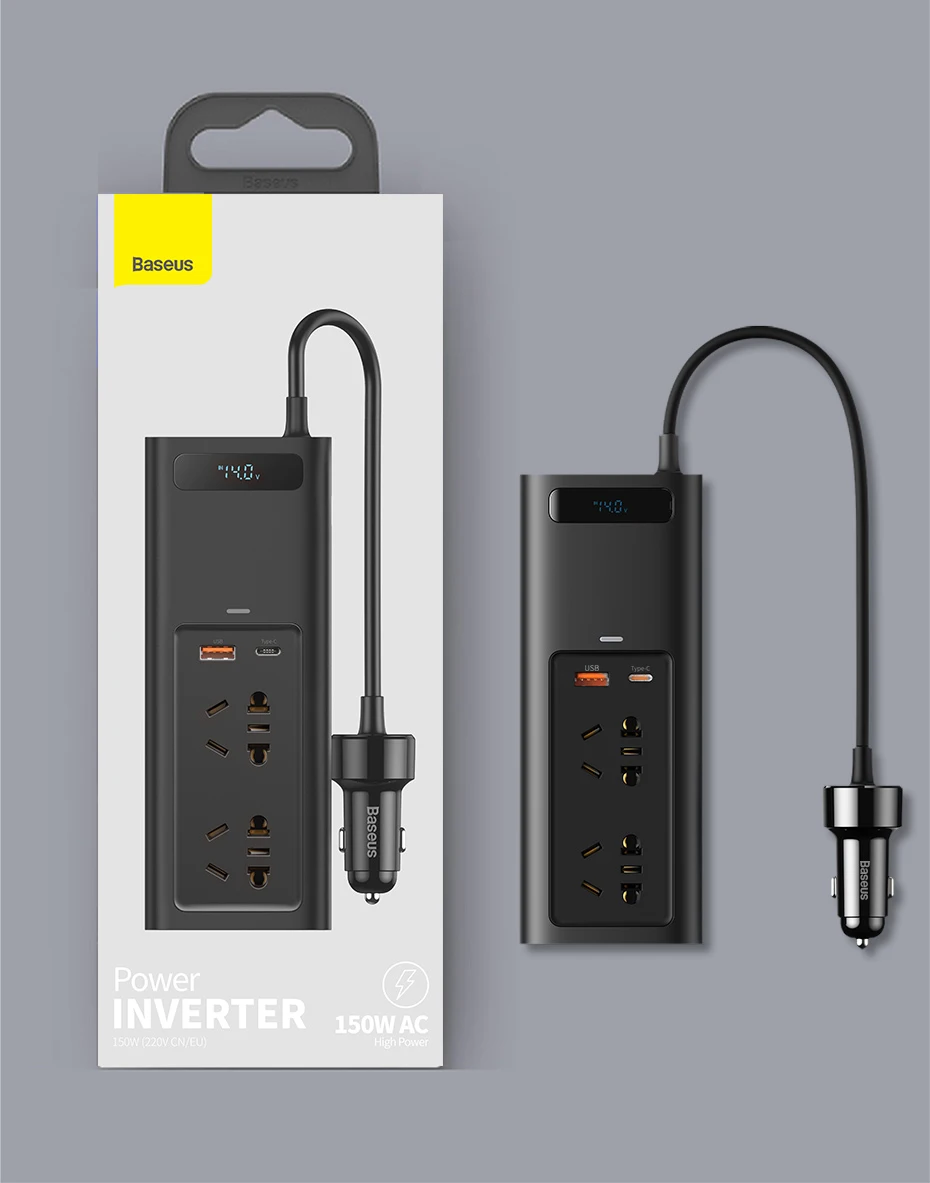 Comprar Baseus-Inversor de corriente para coche, Cargador rápido USB tipo C de 150W, cc 12V a CA 220V 110V