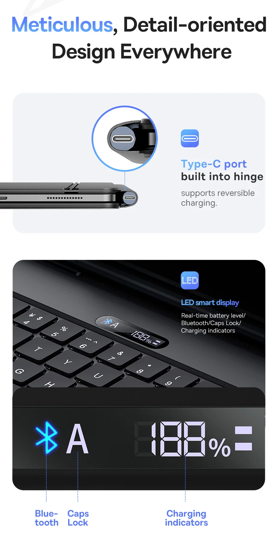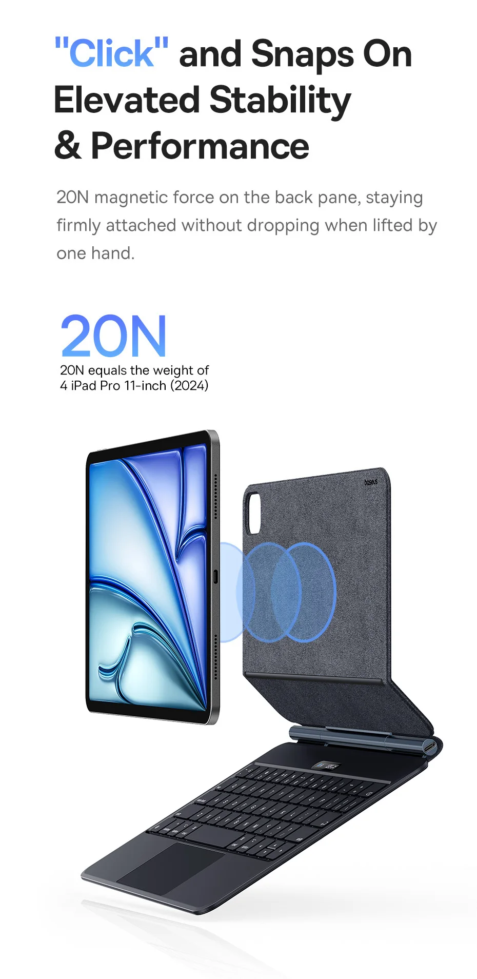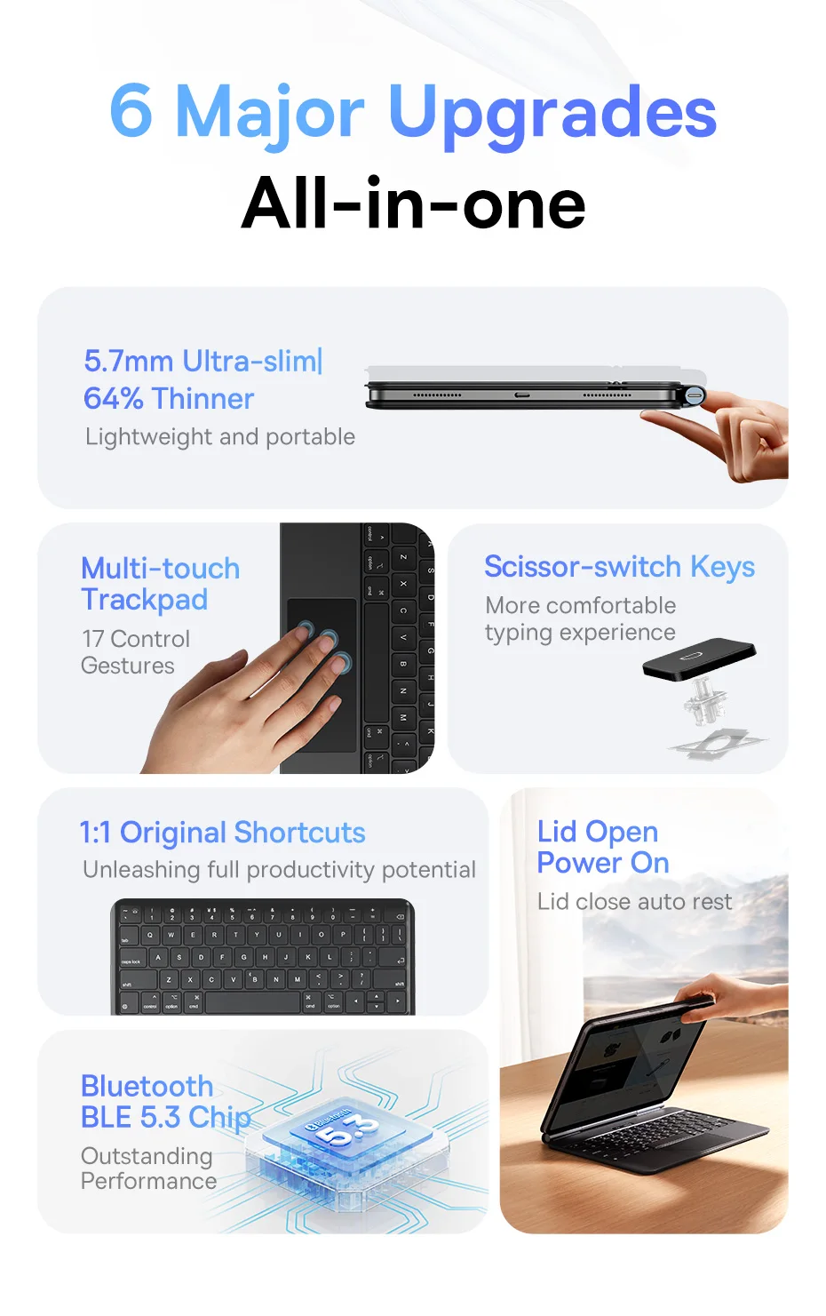 No funciona, la aplicación Baseus no lo reconoce, la mitad del teclado funciona, ¡el mouse es razonable! Es hermoso, delgado con un diseño excelente y la parte magnética encaja como el original de Apple.