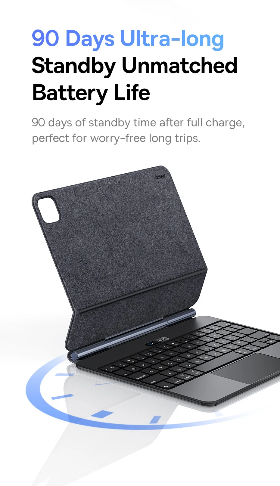 ¡Gran calidad de Baseus! Similar al Magic Keyboard original, utiliza Bluetooth en lugar de conectores físicos, pero cuenta con una duración de batería suficiente para que nunca tengas que preocuparte.