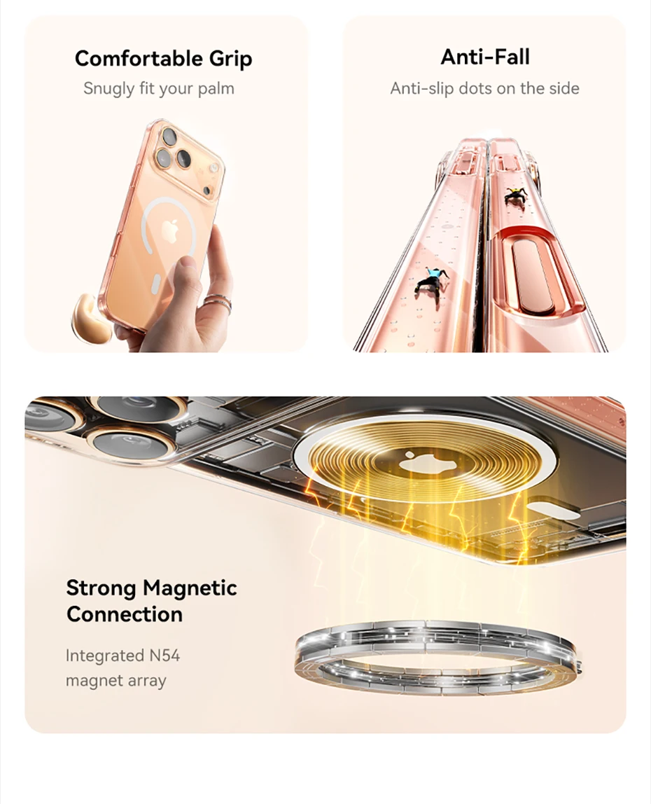 Es resbaladizo y no es estable en la mano, además hay un espacio entre el protector de pantalla y el teléfono. Es algo más grande que otros productos en el mercado, y a veces, al sostener el teléfono, se siente un hueco en la parte trasera y no se adhiere al teléfono, ni tampoco los bordes... Lamentablemente, he estado usando sus productos durante años, pero este es el único producto que encuentro de baja calidad y que no es adecuado en absoluto para el iPhone 17 Pro Max.