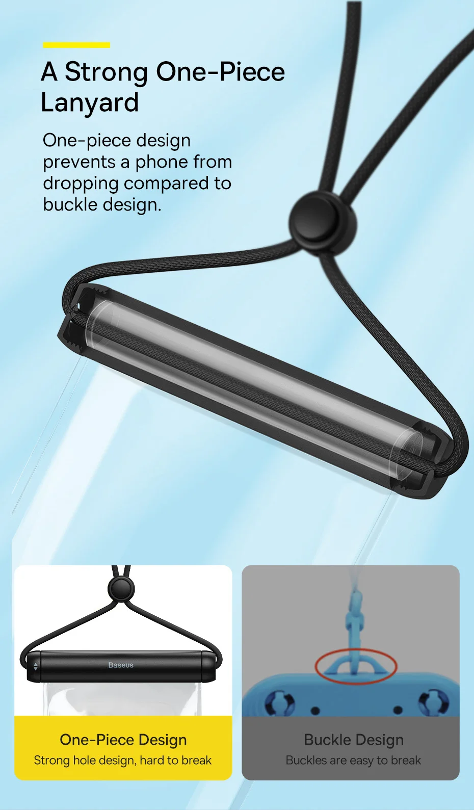 One-piece design prevents a phone from dropshipping compared to buckle design.