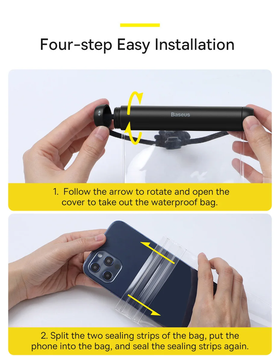 1. Follow the arrow to rotate and open the cover to take out the waterproof bag.