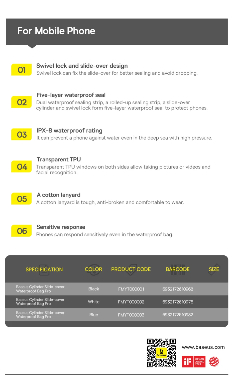 IPX8 waterproof rating offers comprehensive protection to phones against explosions in the deep sea with high pressure.
