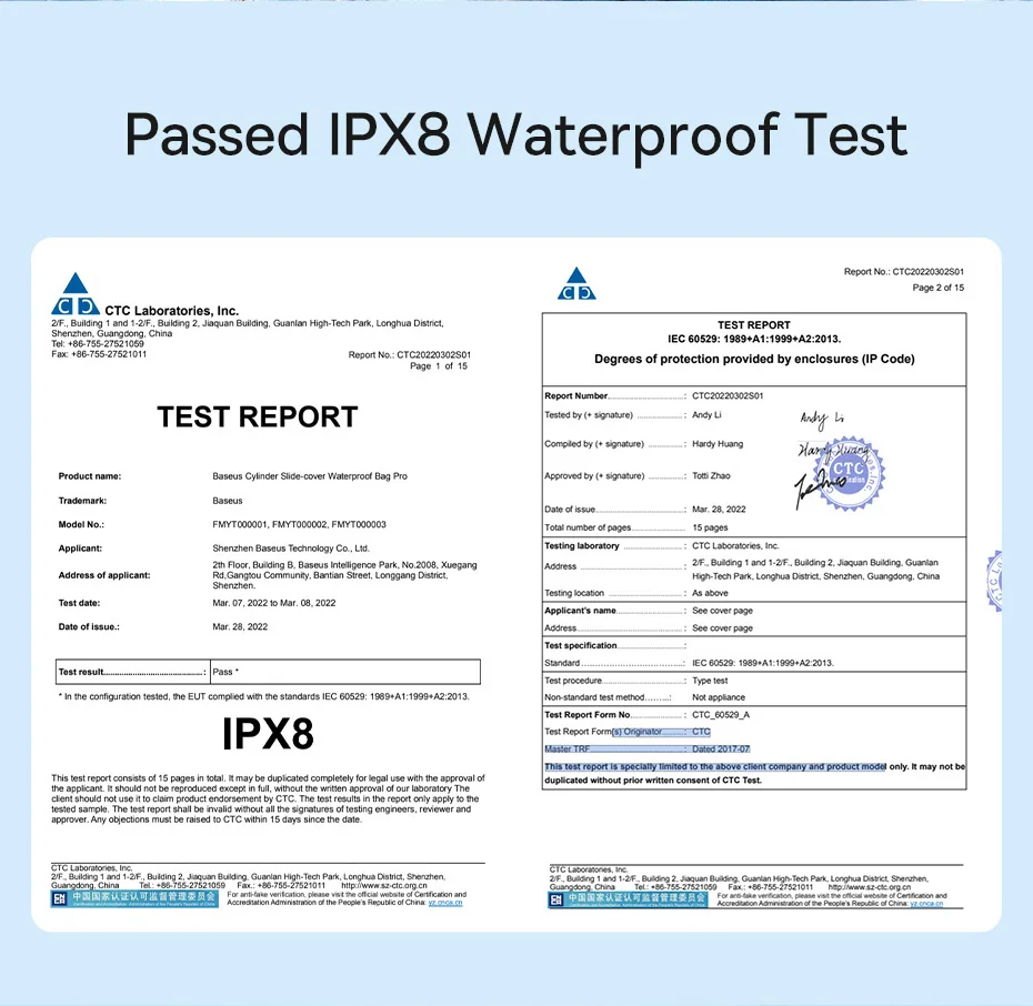 Passed IPX8 Waterproof Test