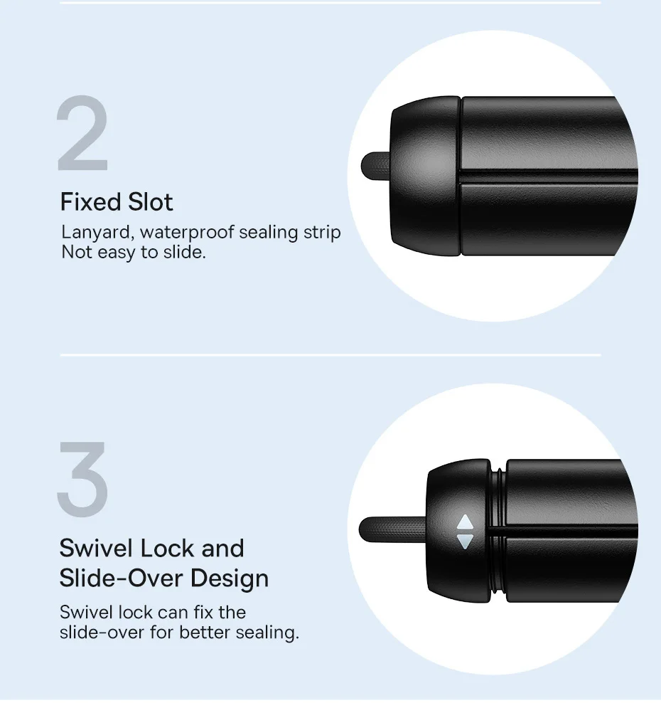 3. Swivel lock and slide-over design: Swivel lock can fix the slide-over for better sealing.