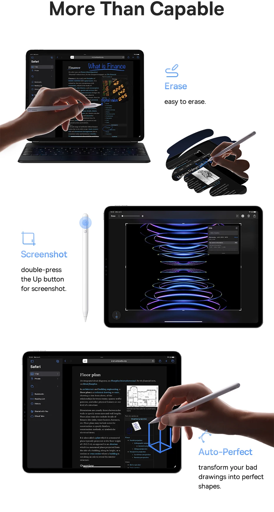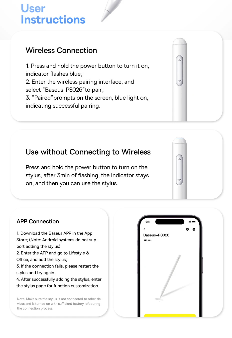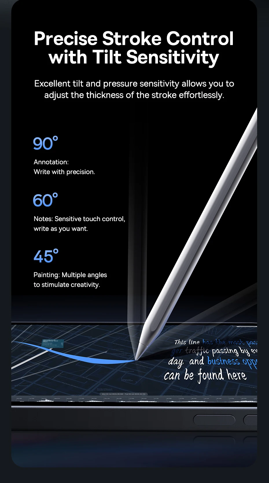 Comprar Baseus-lápiz óptico de carga inalámbrica para Apple Pencil, lápiz táctil con rechazo de palma, inclinación ajustable para iPad Pro