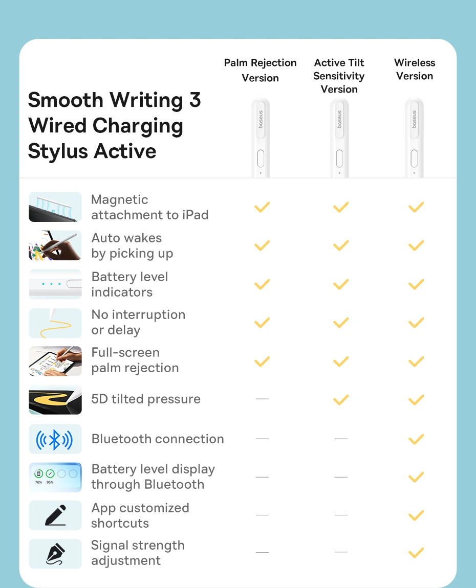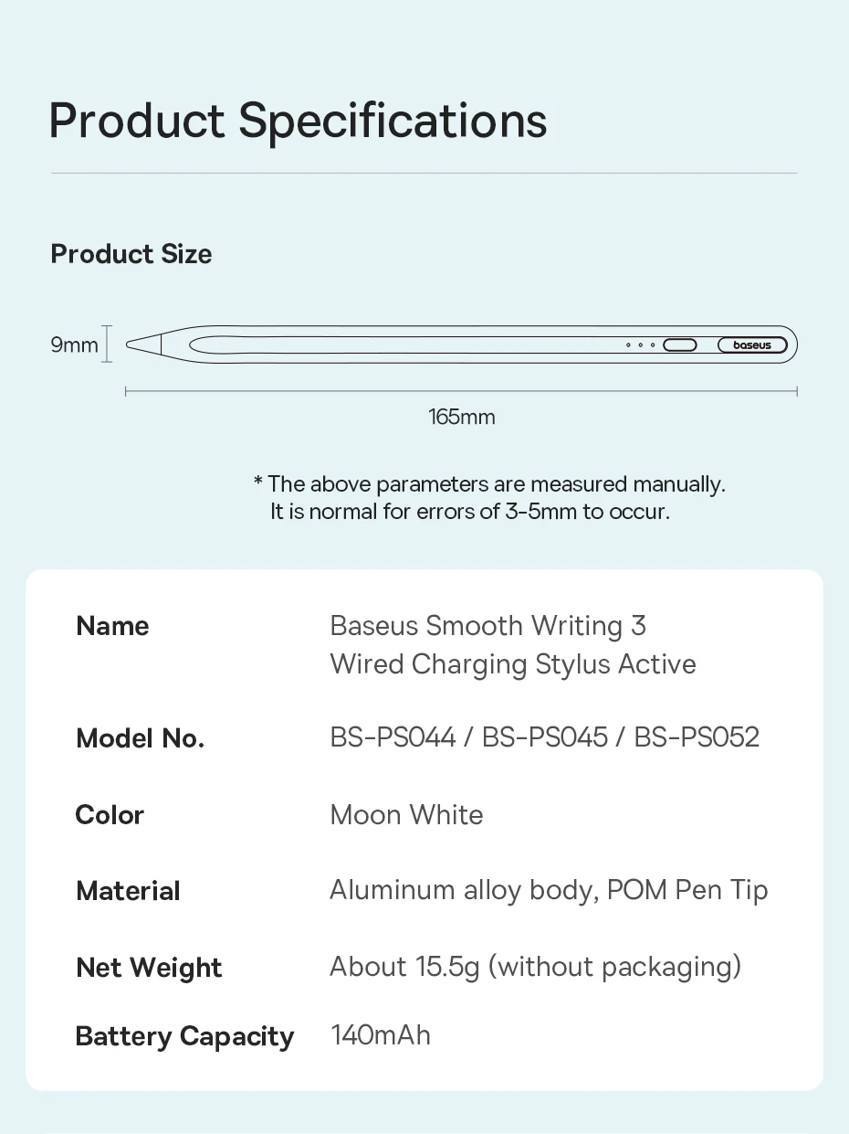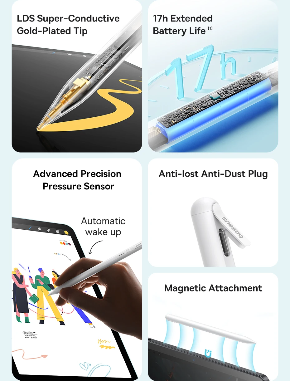 El anuncio es engañoso. El modelo en las imágenes es el Baseus-PS052, que debería tener conectividad Bluetooth, mostrar el estado de la batería en el iPad y funciones avanzadas, pero recibí el modelo PS045, que es solo un lápiz normal. El producto es diferente de lo que se anunciaba. No lo recomiendo.