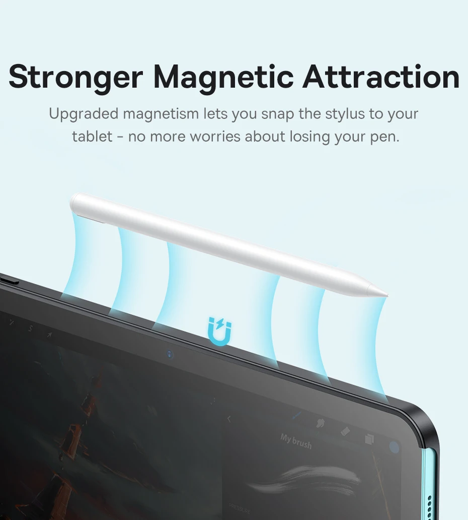 Escribe bien, fluido y con respuesta, sin interrupciones ni retrasos. El bolígrafo se puede guardar magnéticamente en el iPad, pero se carga mediante un cable USB-C. Sin carga inalámbrica.