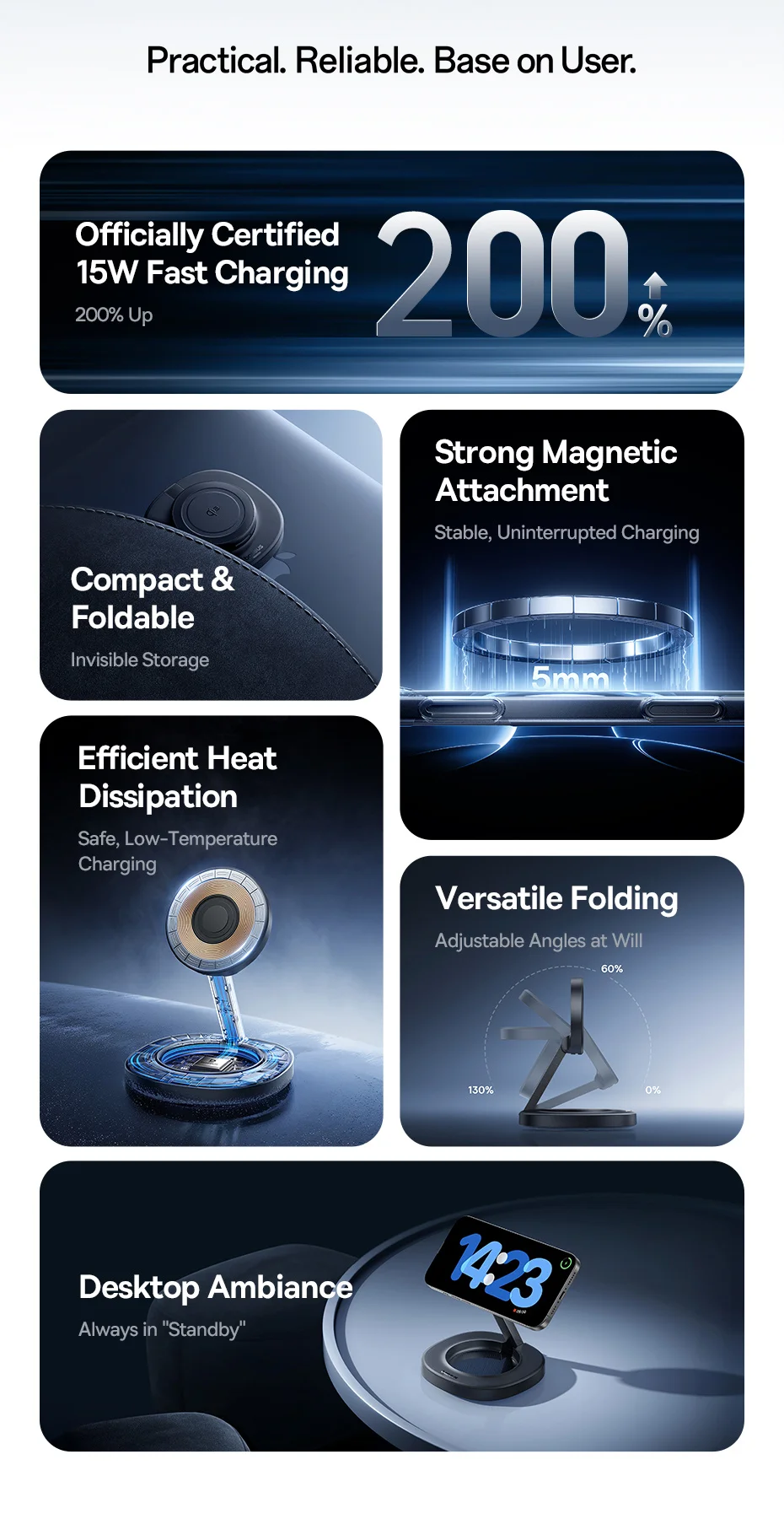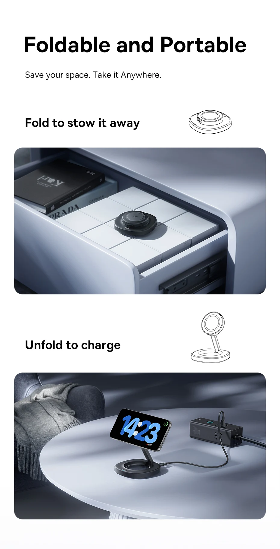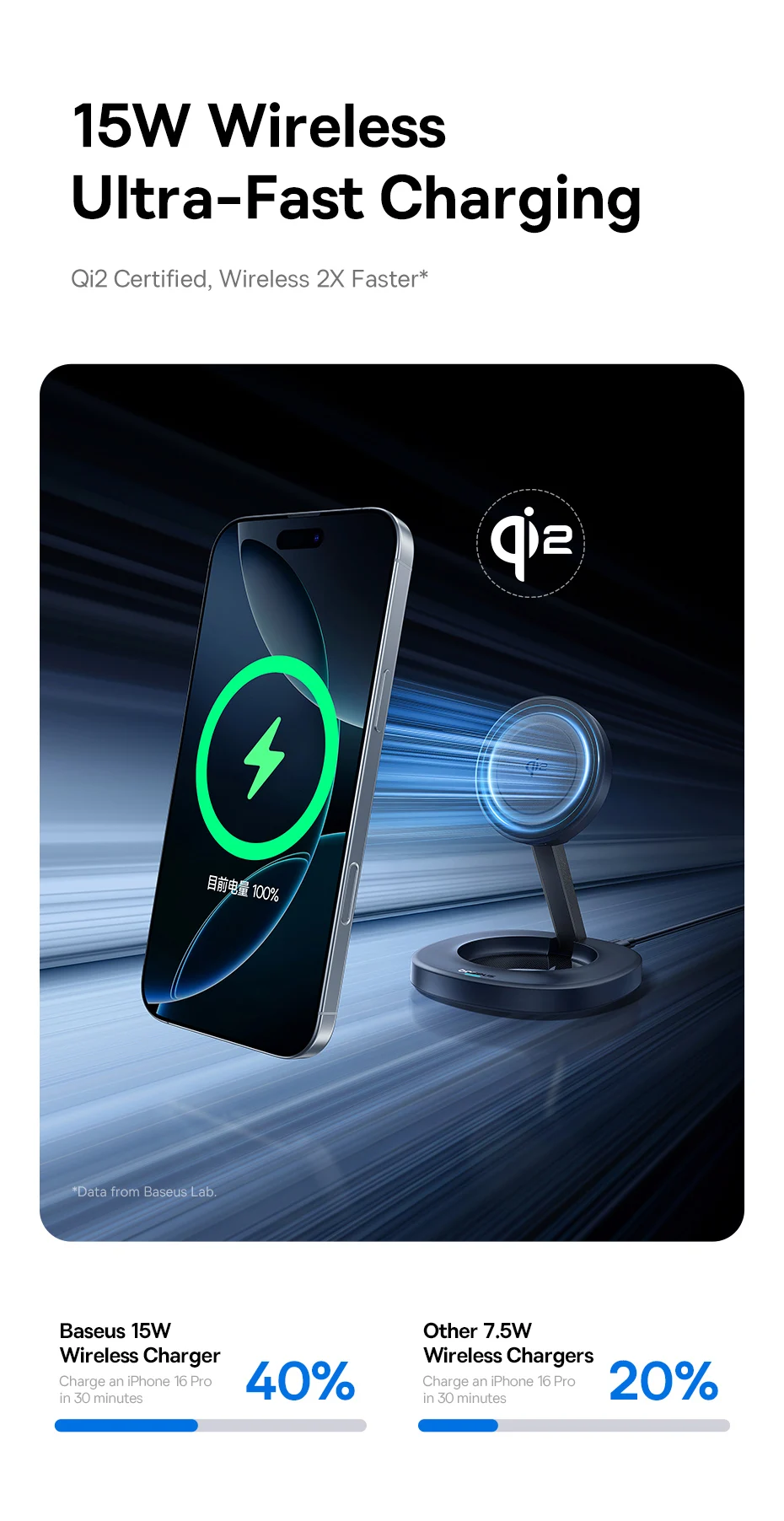 Funciona bien y es muy práctico. No viene con cargador. No medí la velocidad de carga ni la potencia.