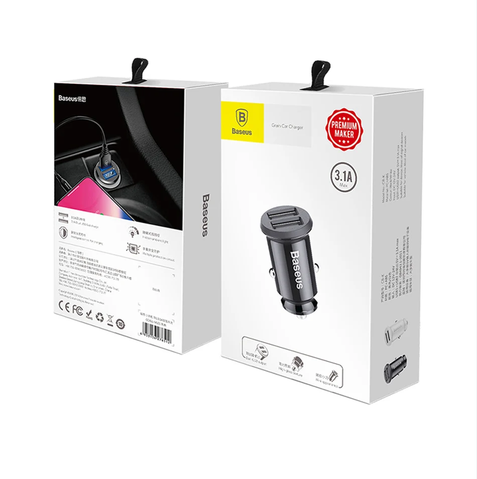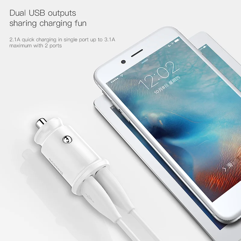 Comprar Baseus-minicargador Universal para coche, adaptador USB Dual para teléfono móvil, tableta, GPS, 3.1A